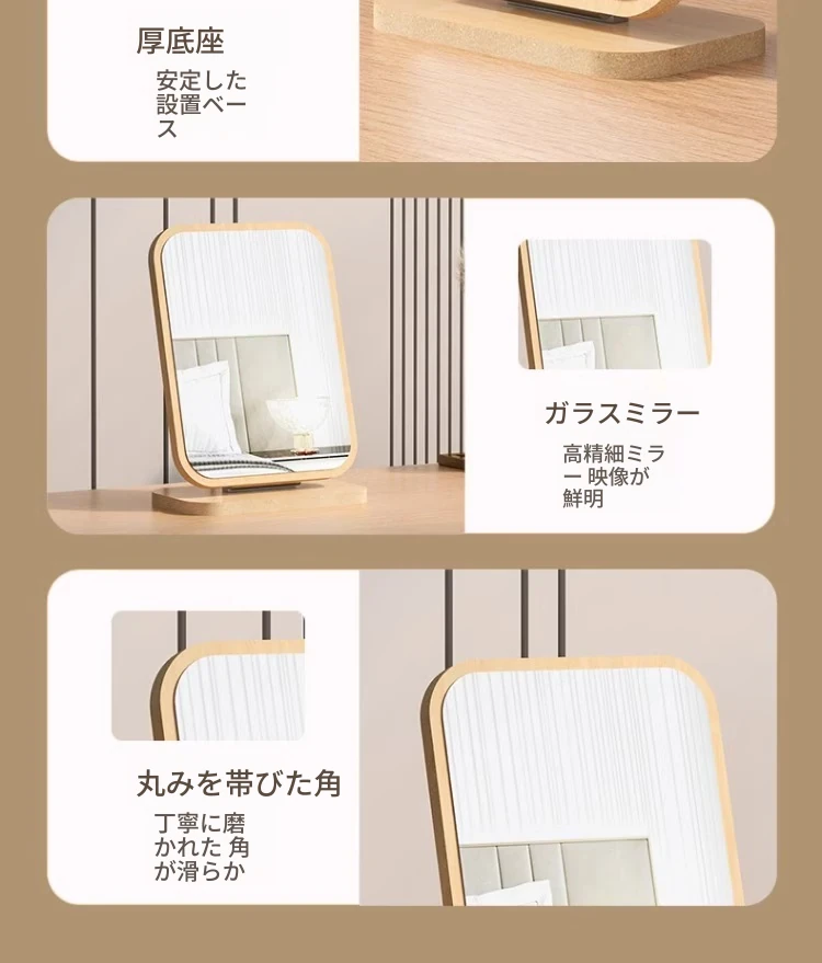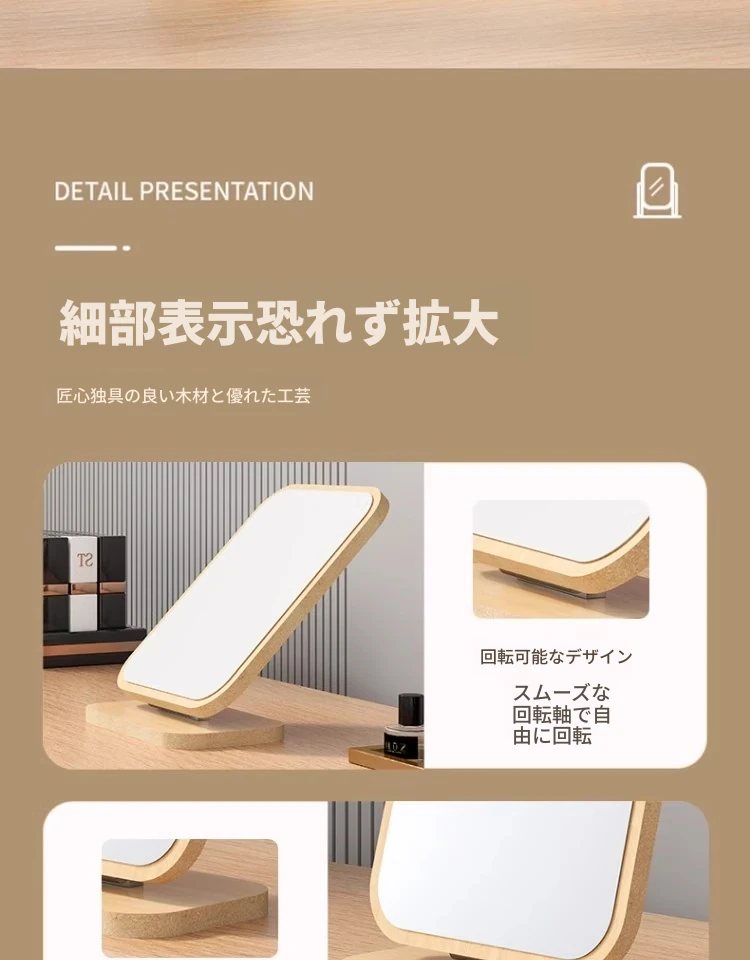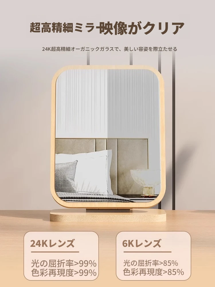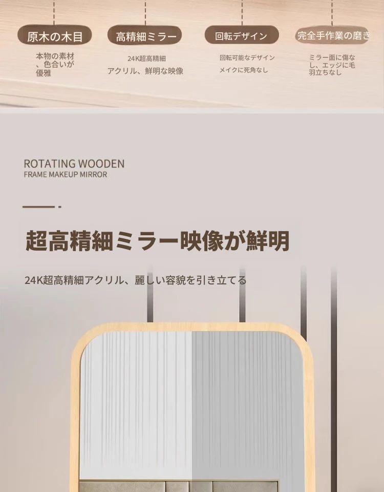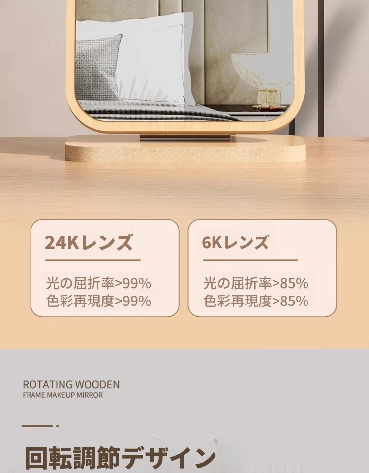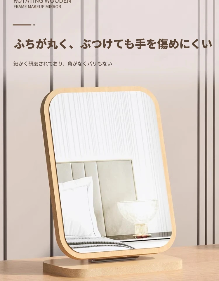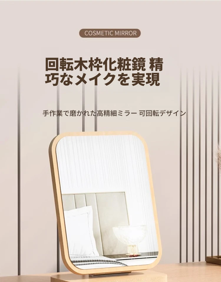 回転式化粧鏡 - デスクトップ用・家庭用・主寝室向け!学生寮にもぴったりな木製折りたたみ式ポータブルミラー。美の瞬間をいつでもどこでもサポートします!