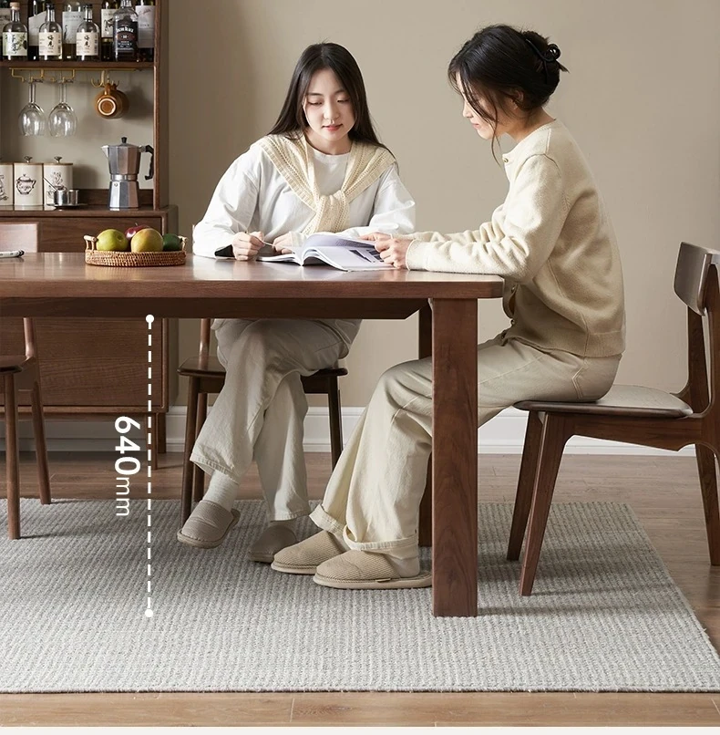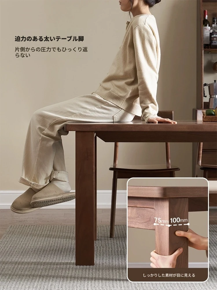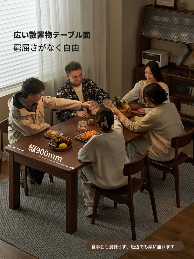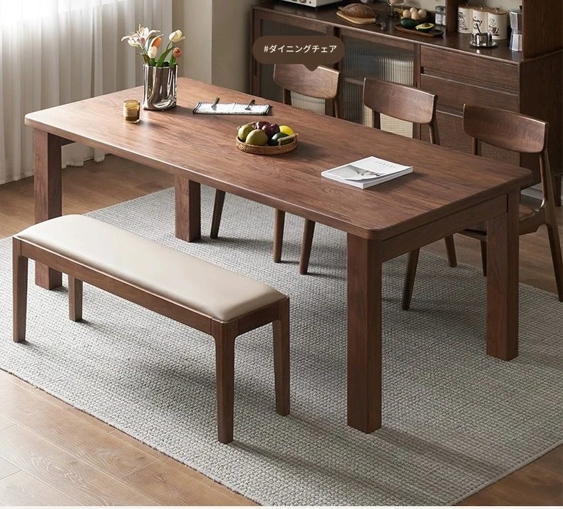 原木の素朴な魅力!無垢材の長方形ダイニングテーブル - ブラックウォールナット製、家庭用・レストラン用、食事や仕事に最適なスタイリッシュなデザイン!