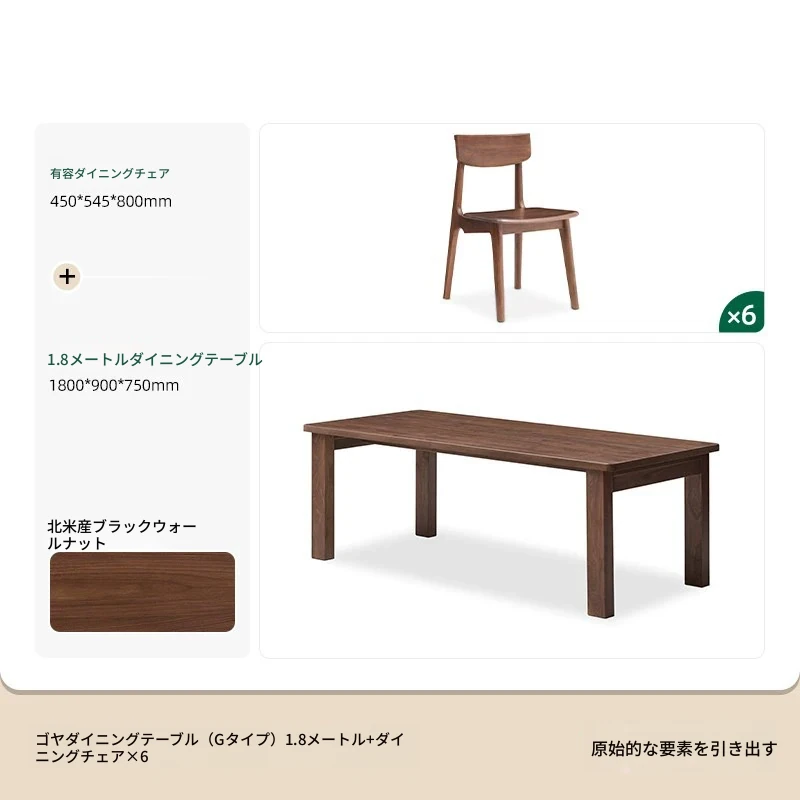 【北米産ブラックウォールナット】1.8メートルテーブル6脚セット(L4122)