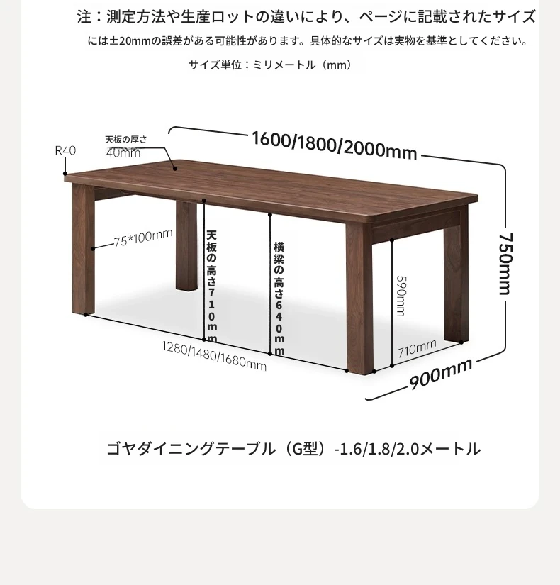 【北米産ブラックウォールナット】2.0メートルダイニングテーブル(2000*900*750mm)