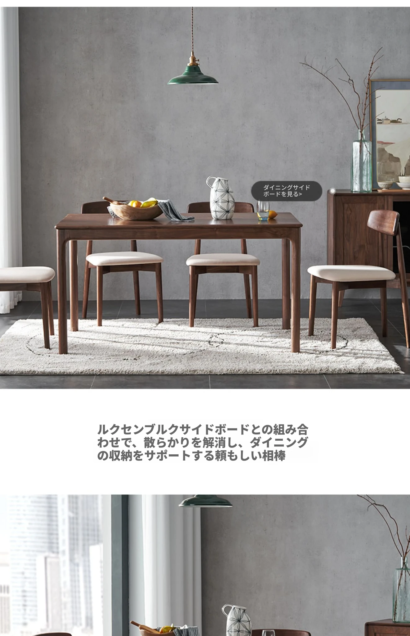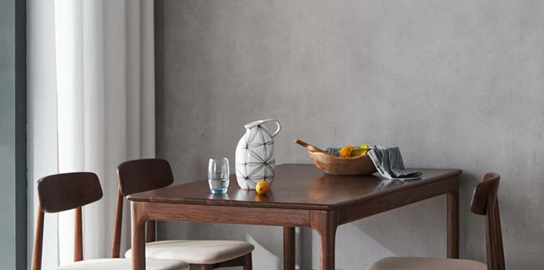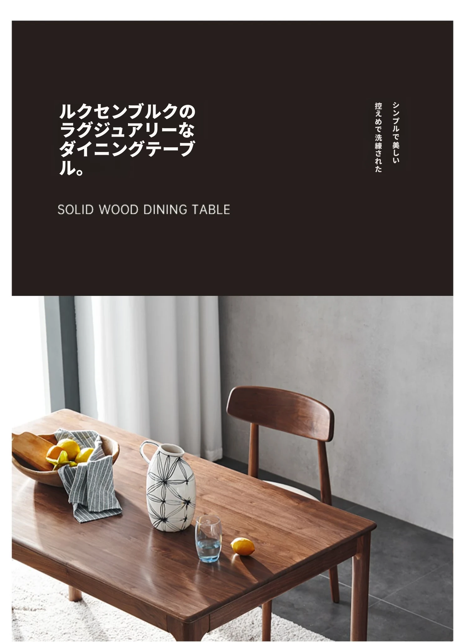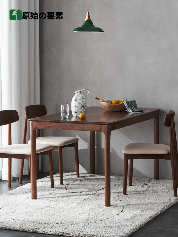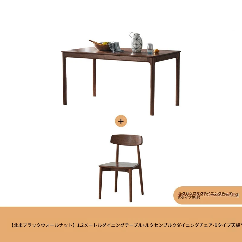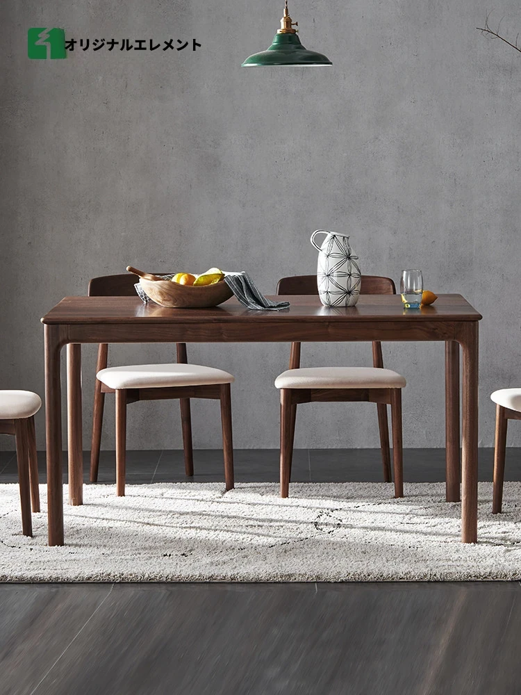 オリジナルエレメント無垢材ダイニングテーブル・ブラックウォールナット製の軽奢華でシンプルな家庭用食卓セット(テーブル1台+椅子4脚)で、洗練された食事体験をお楽しみください!