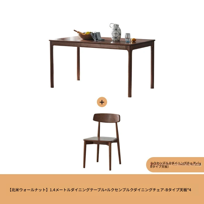 ブラックウォールナット1.4mダイニングテーブル + Bタイプ板面ダイニングチェア(B5125) * 4