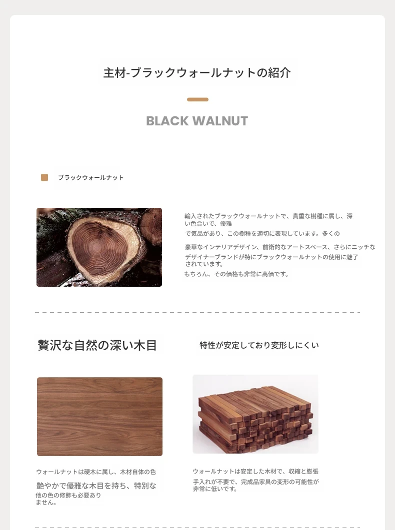 ブラックウォールナット1.2mダイニングテーブル - (1200*750*750mm)