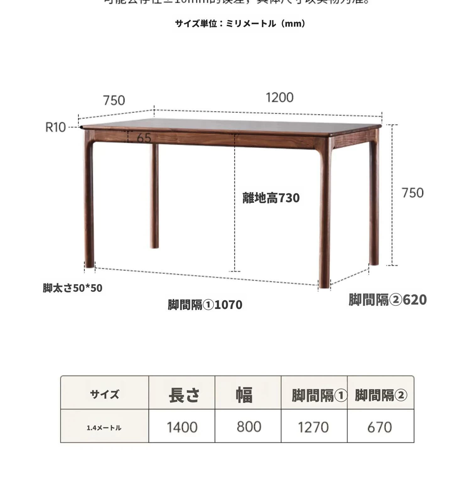 ブラックウォールナット1.4mダイニングテーブル - (1400*800*750mm)
