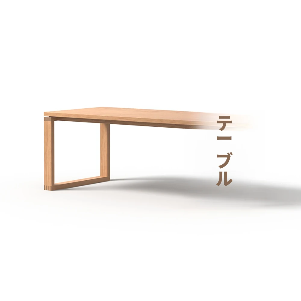 無垢材のダイニングテーブル - 和の美しさを感じる侘寂風デザイン、赤オークの大きなテーブルとシンプルでモダンな椅子のセット。家庭での食事を特別なひとときに演出します。