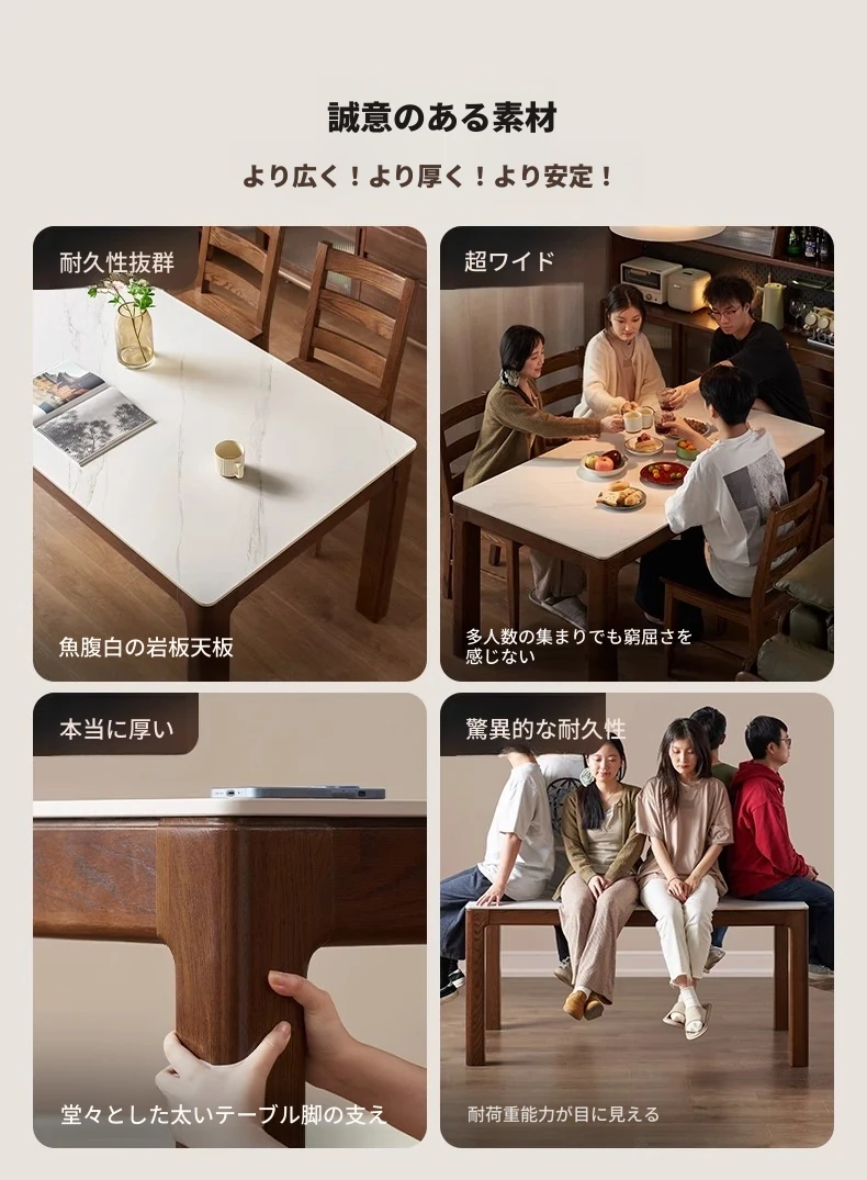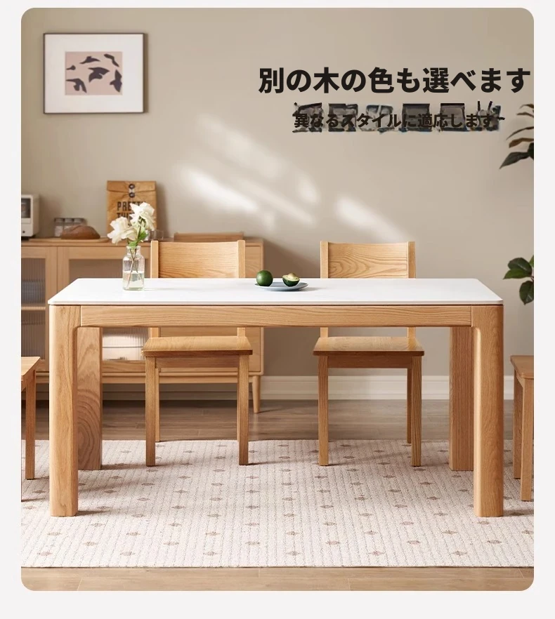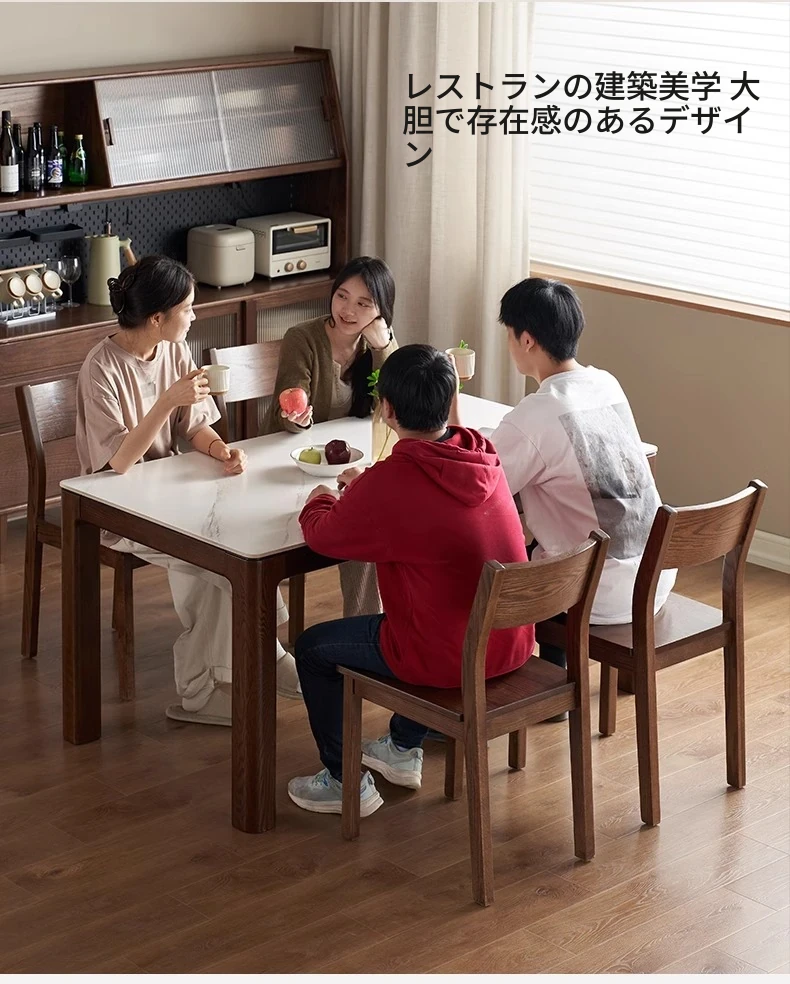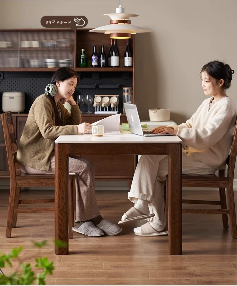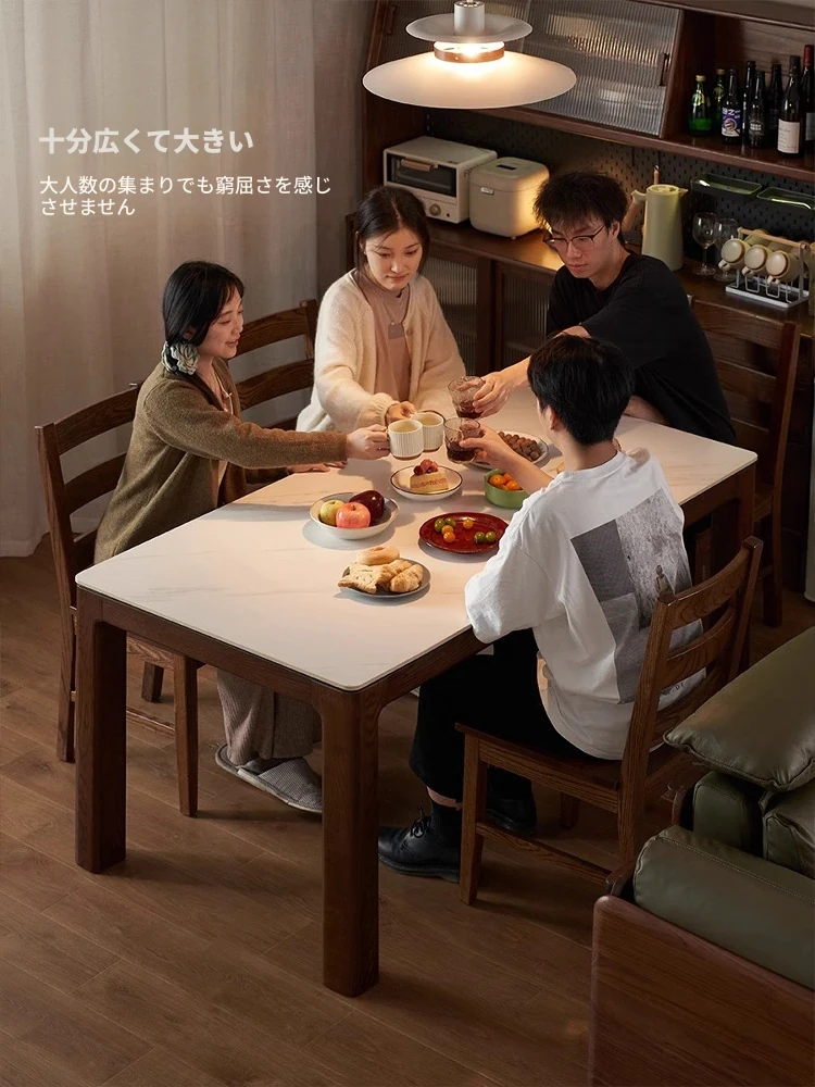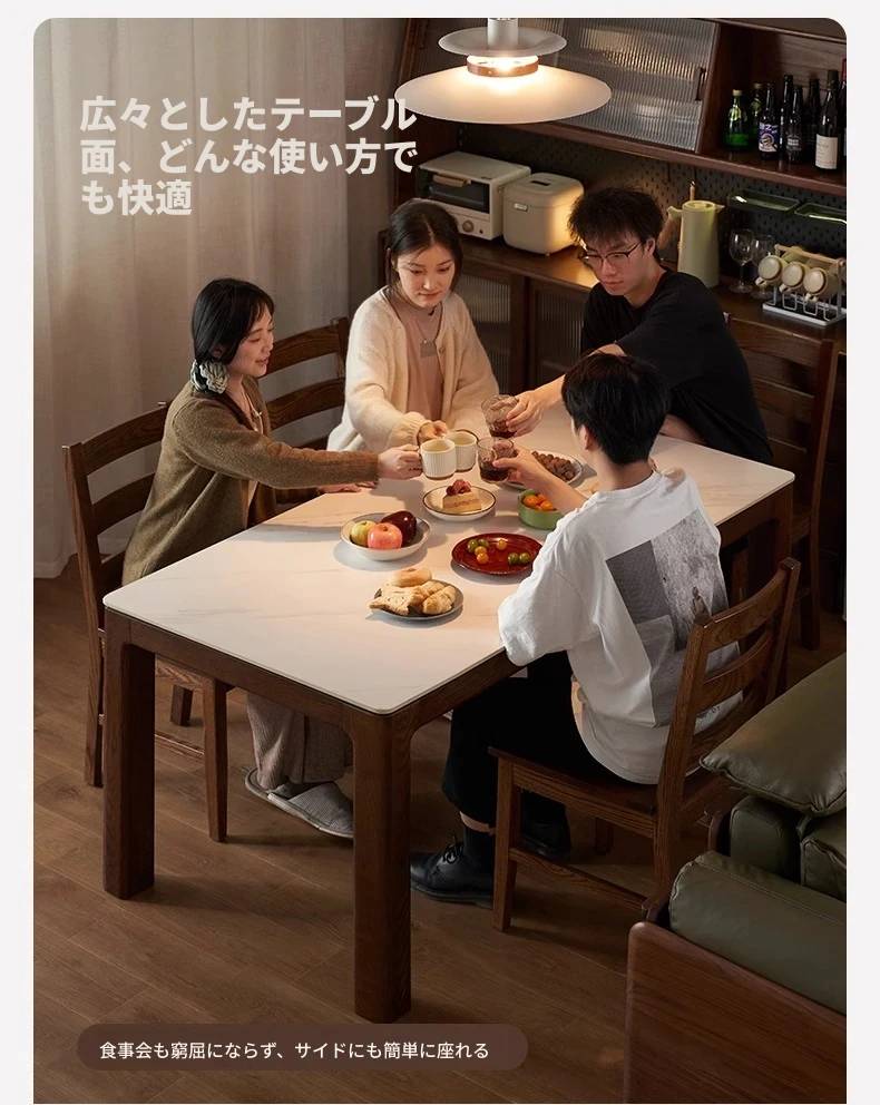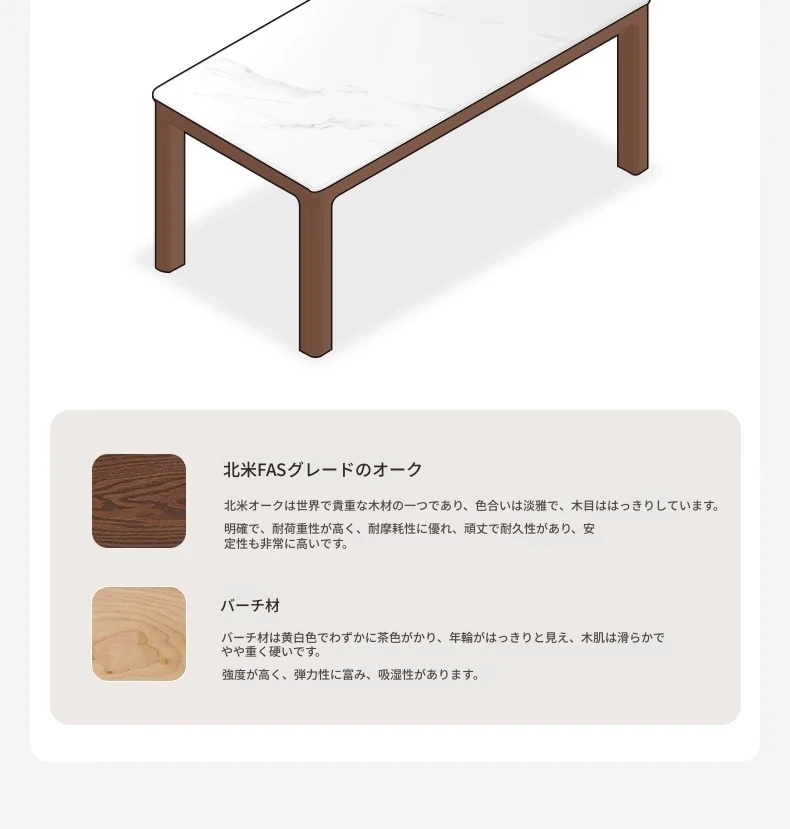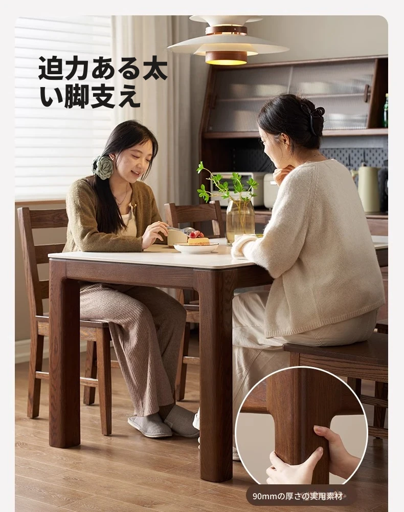 天然木材使用!オーク&ウォールナットの高級感溢れる無垢岩板ダイニングテーブル - 家族や友人との素敵な食卓にぴったりな長方形デザイン!