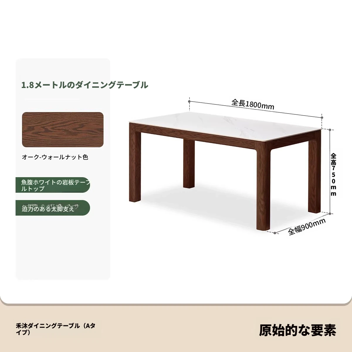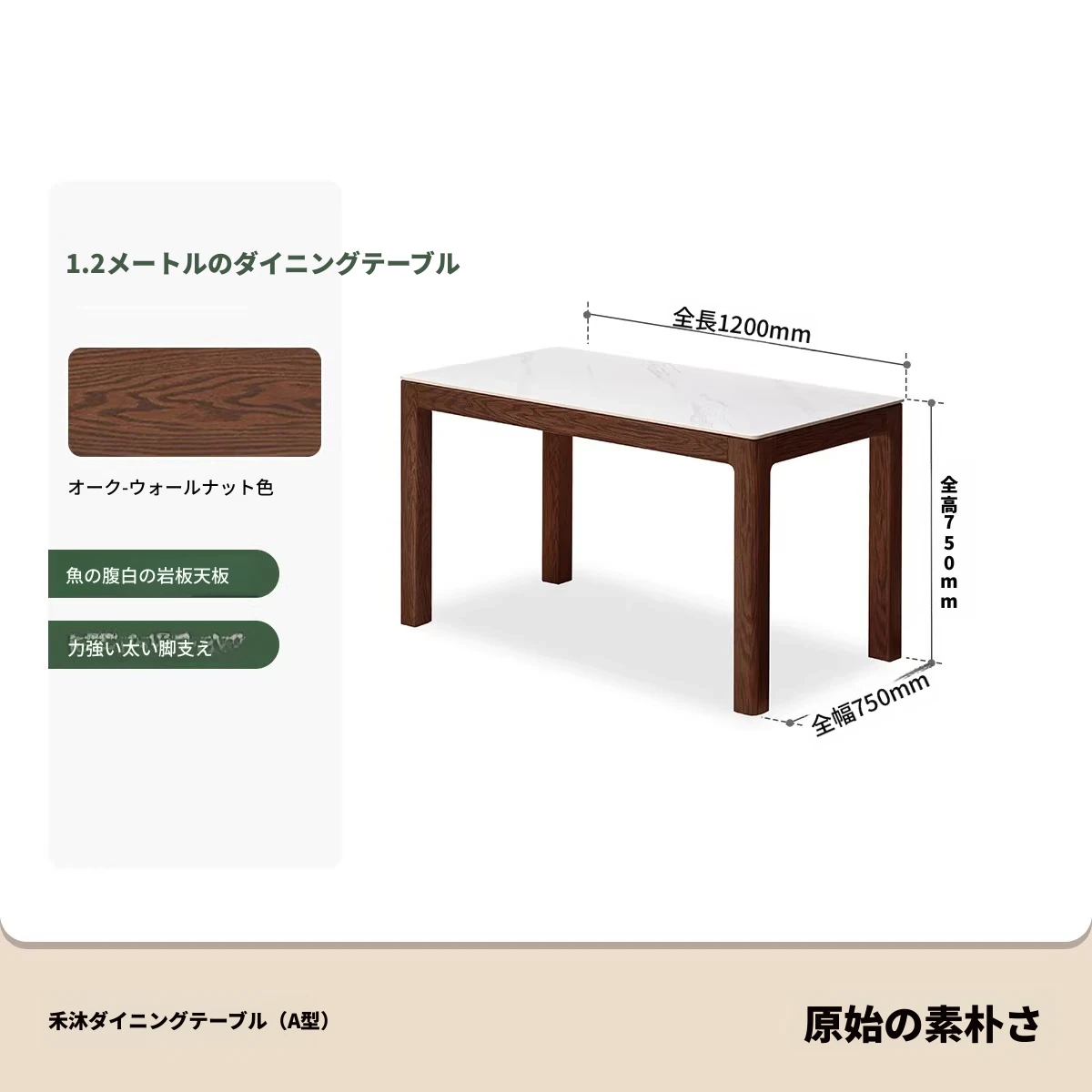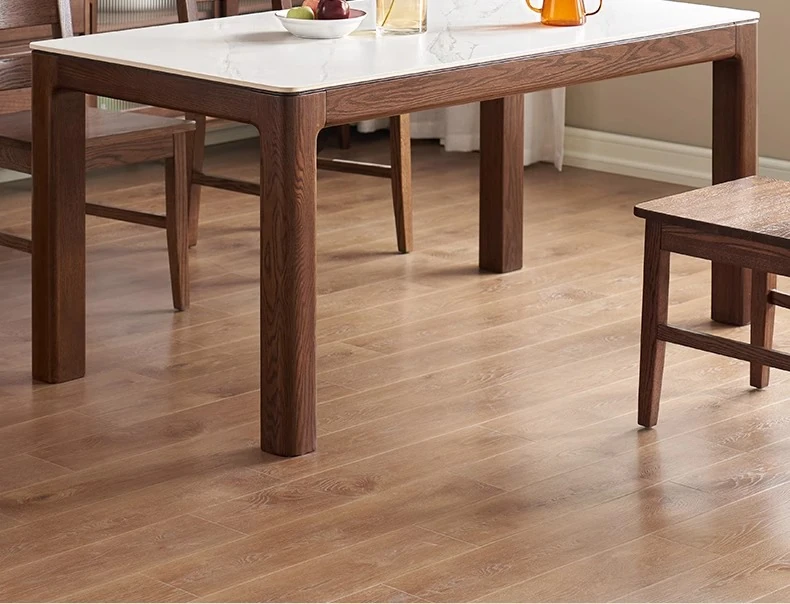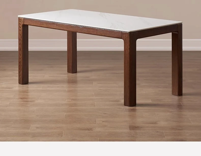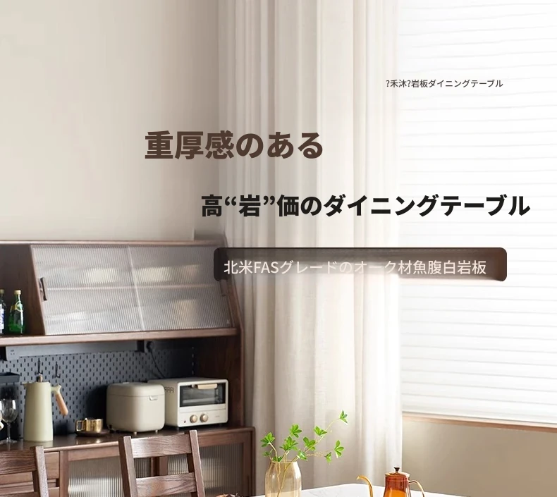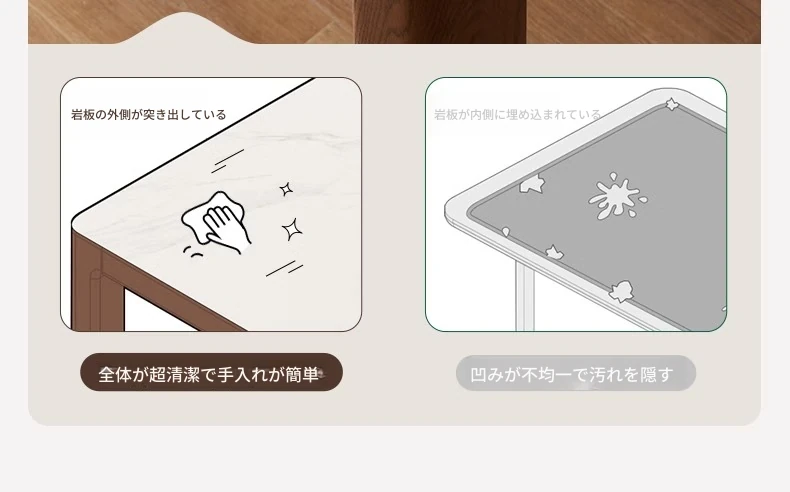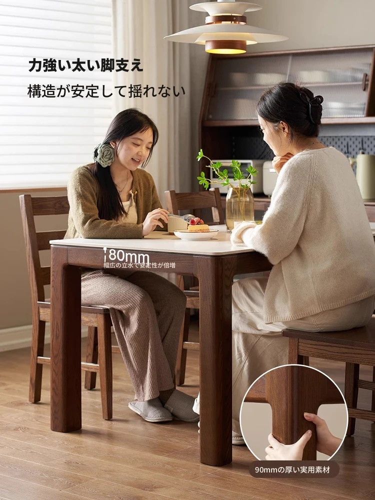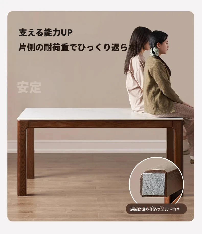 天然木材使用!オーク&ウォールナットの高級感溢れる無垢岩板ダイニングテーブル - 家族や友人との素敵な食卓にぴったりな長方形デザイン!