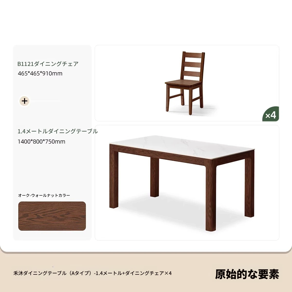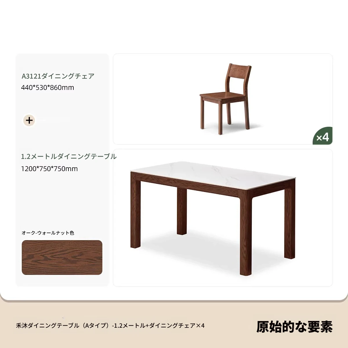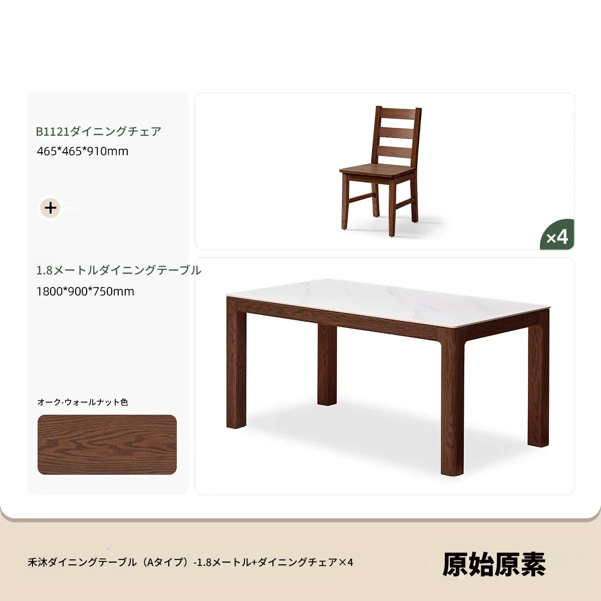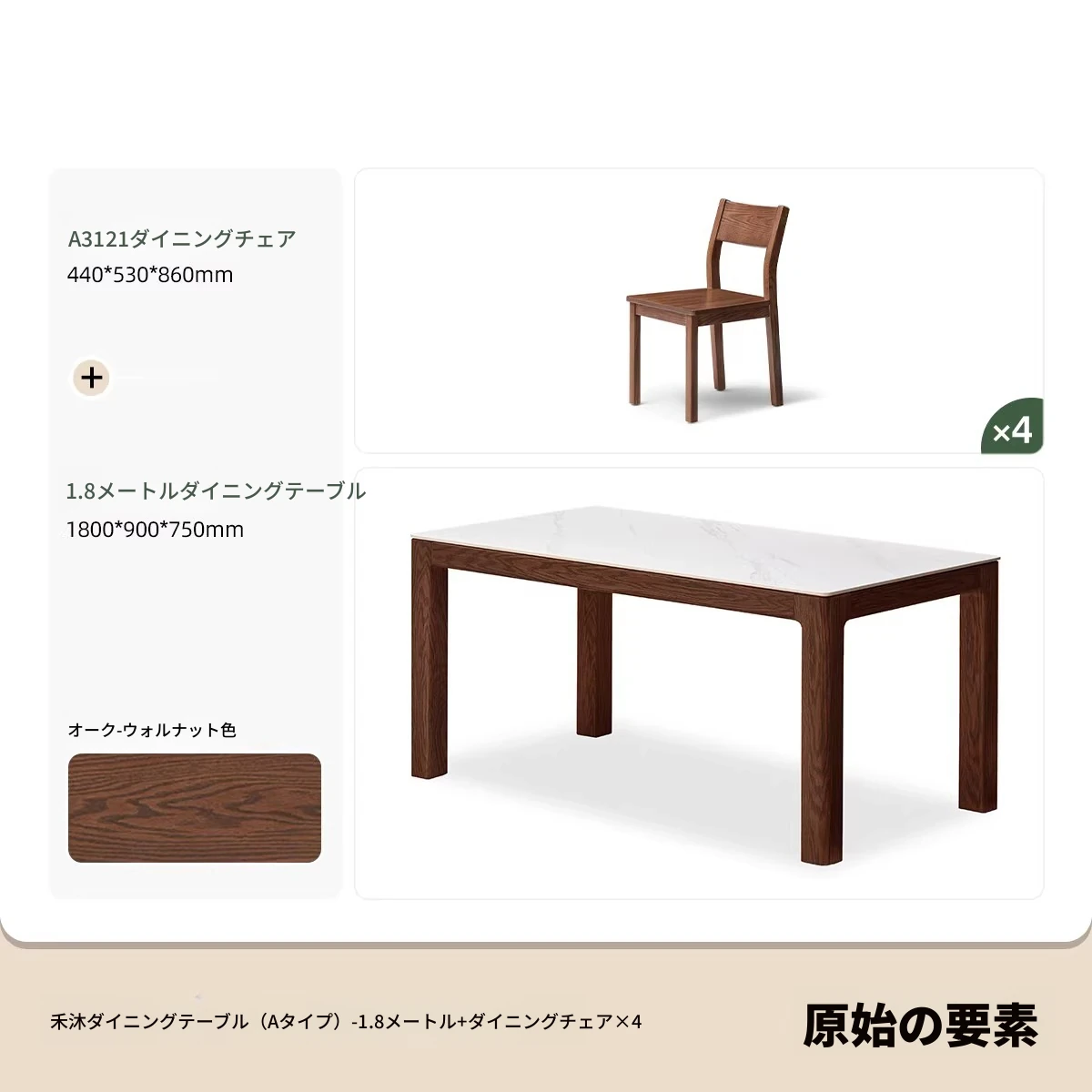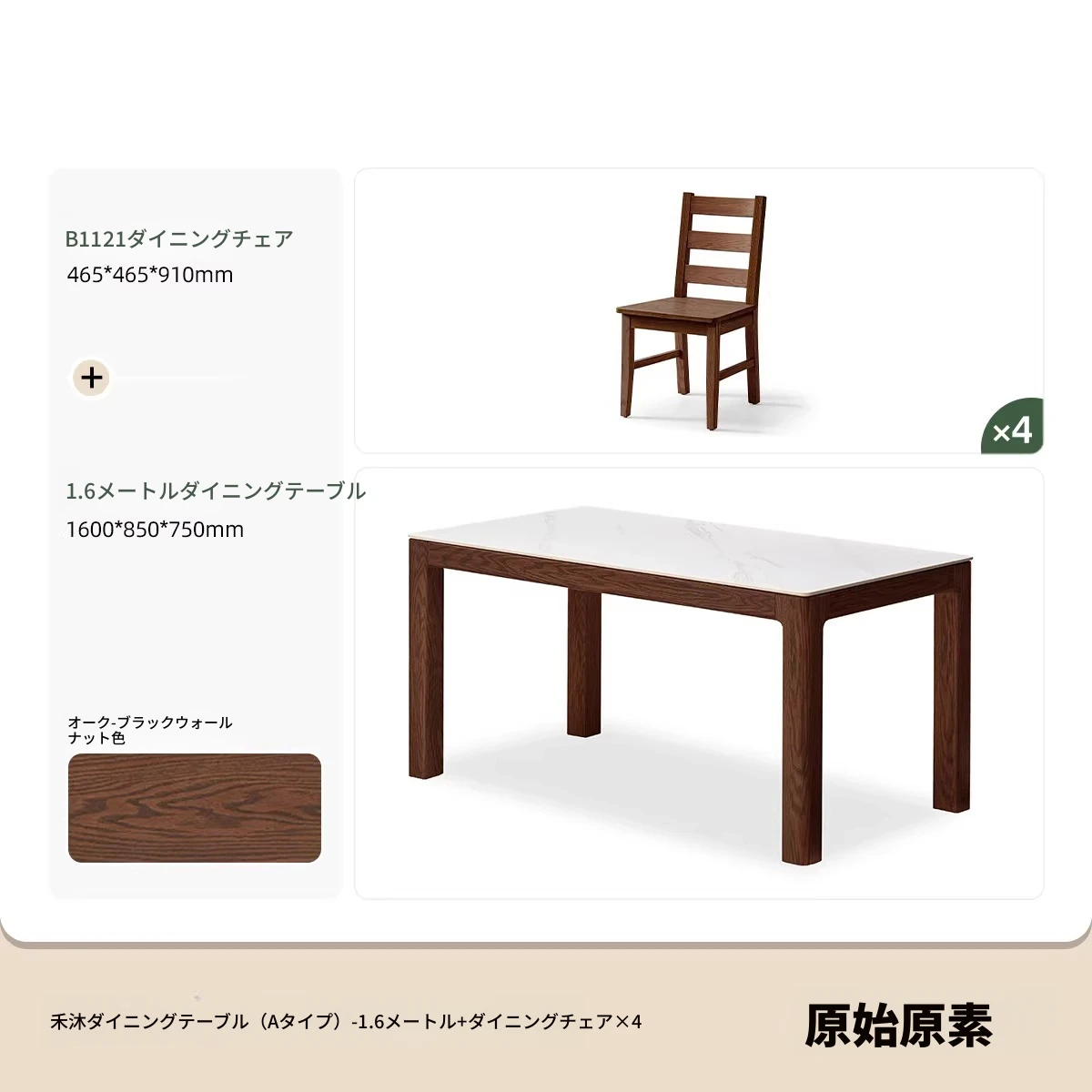 天然木材使用!オーク&ウォールナットの高級感溢れる無垢岩板ダイニングテーブル - 家族や友人との素敵な食卓にぴったりな長方形デザイン!