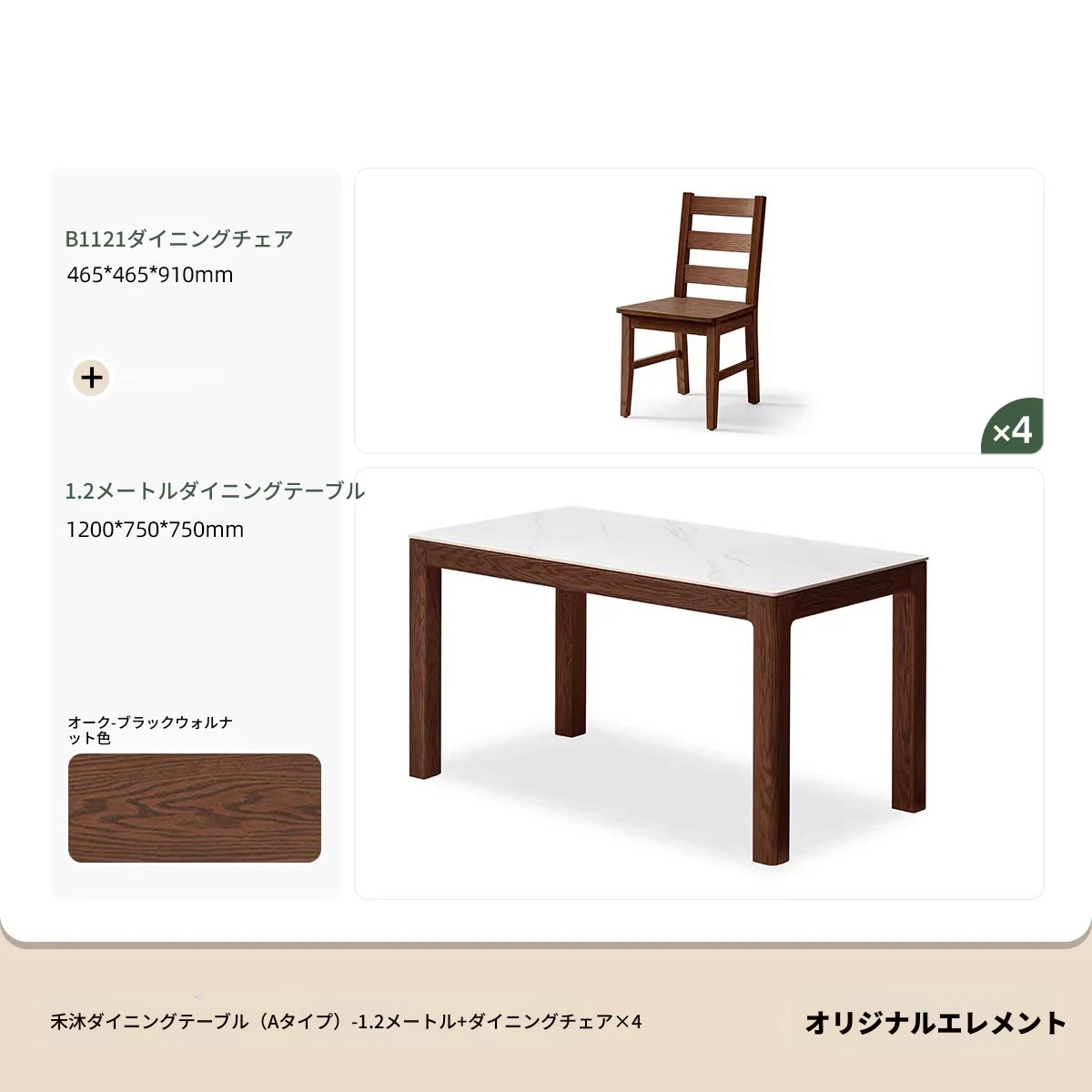 【オーク-ウォールナット色】1.2メートルテーブル4脚(A3121)