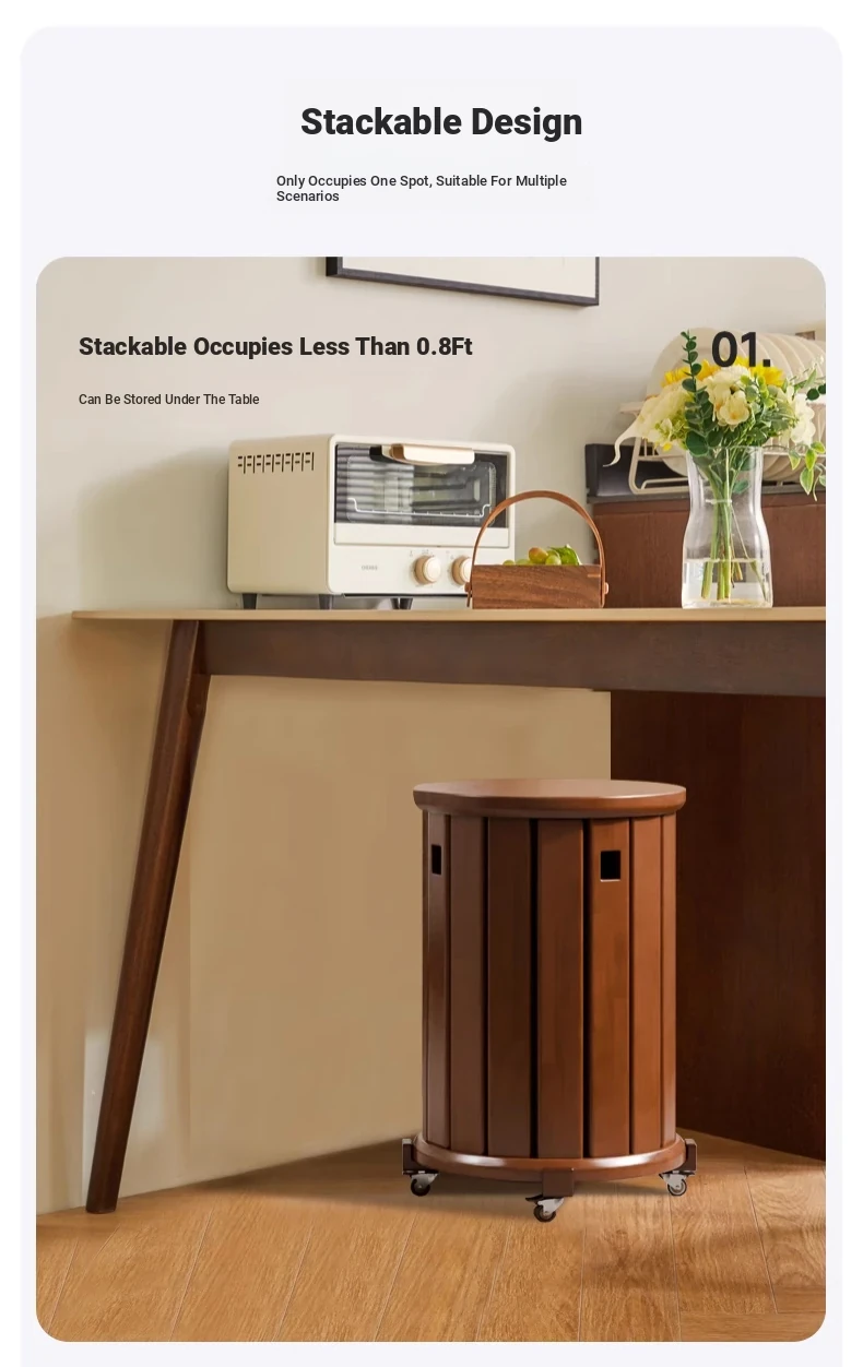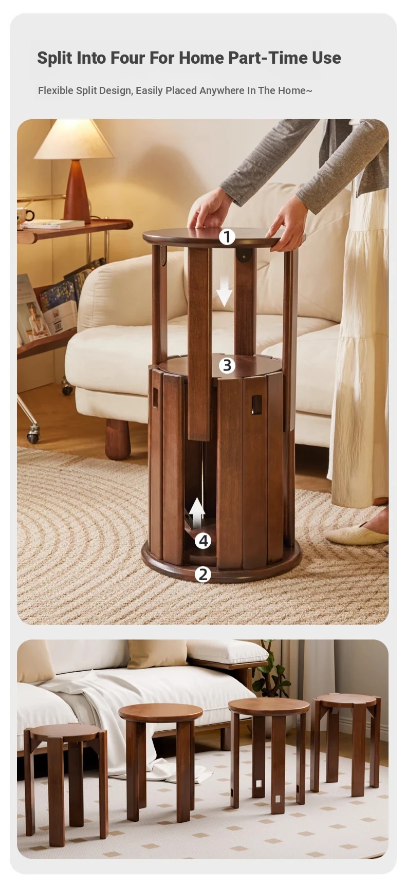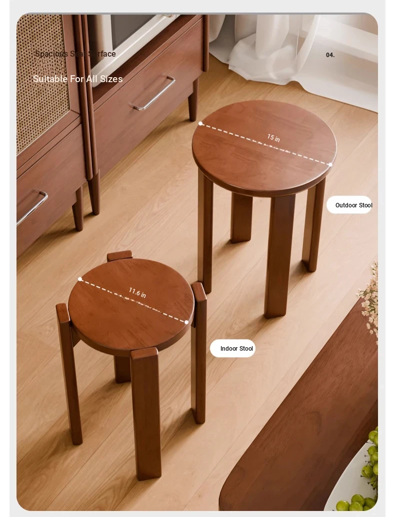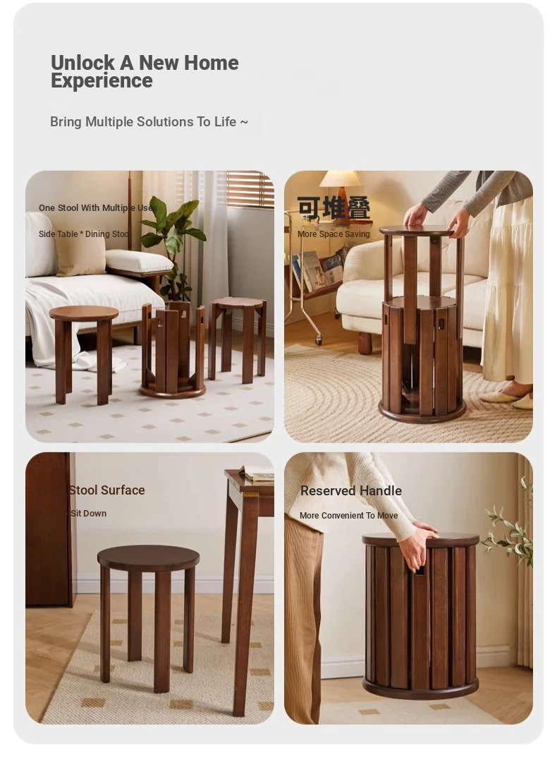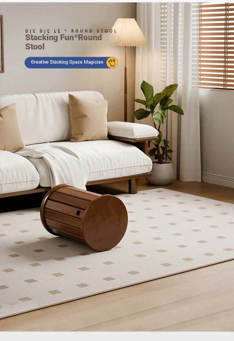 Solid Wood Stacking Stool - Versatile Round Ottoman for Living Room, Coffee Table, or Dining Use - New Chinese Style Nested Benches for Space-Saving Comfort