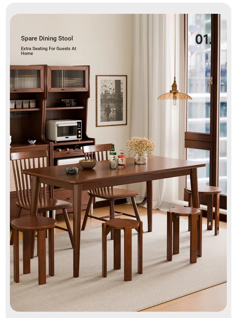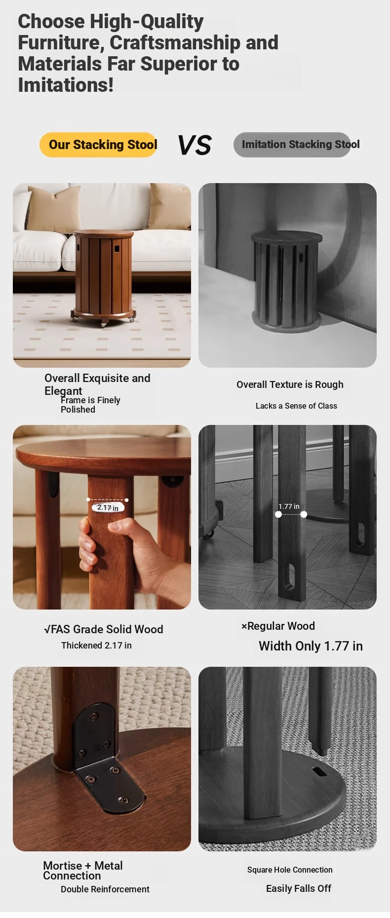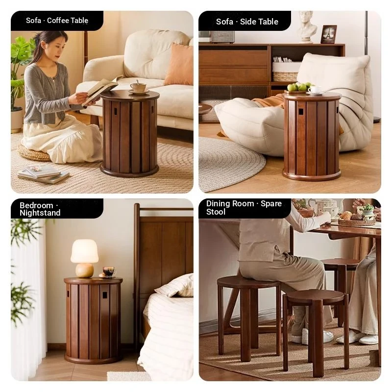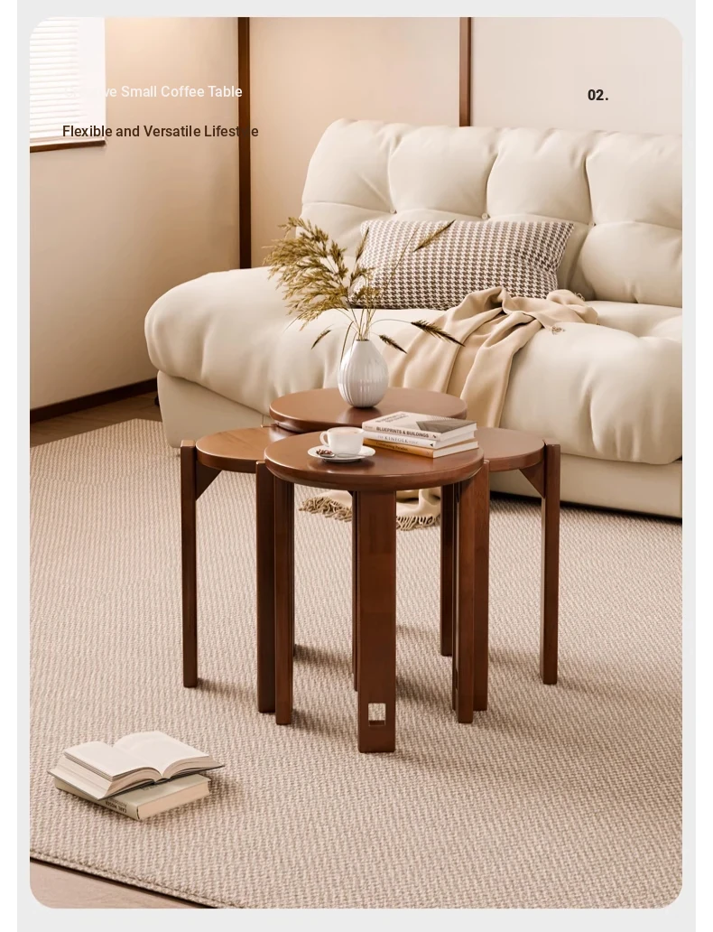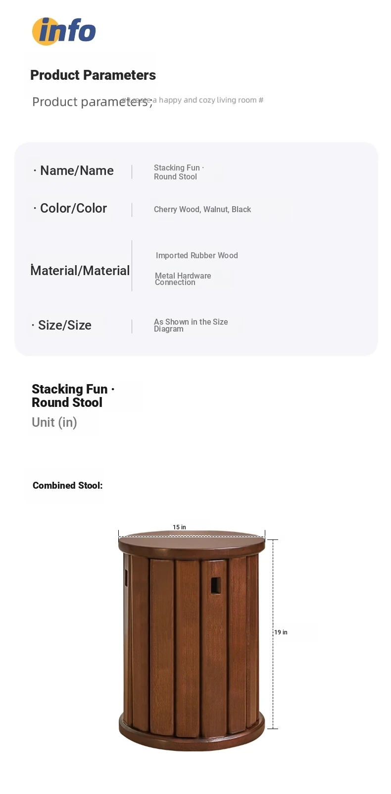 Solid Wood Stacking Stool - Versatile Round Ottoman for Living Room, Coffee Table, or Dining Use - New Chinese Style Nested Benches for Space-Saving Comfort