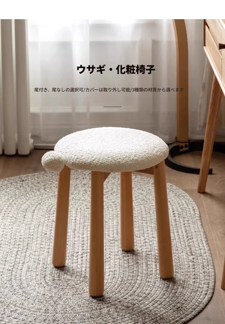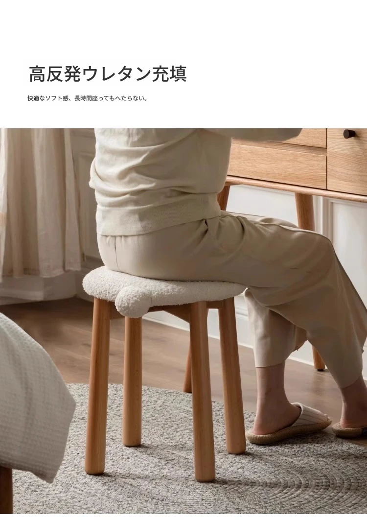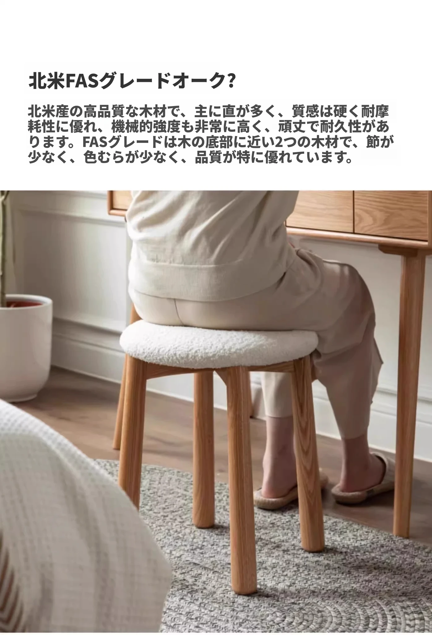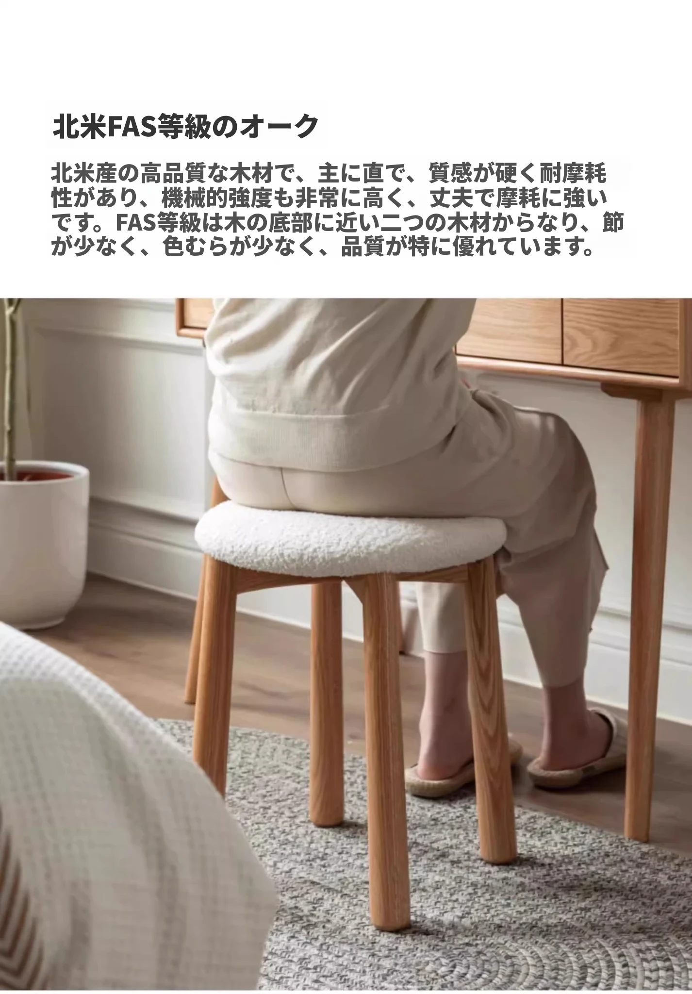 北欧デザインの実木メイクアップスツール - 女子のための高級感溢れるソフトパッド付き椅子。寝室やクローゼットにぴったりの美しい円形スツール!あなたのビューティータイムを格上げします。