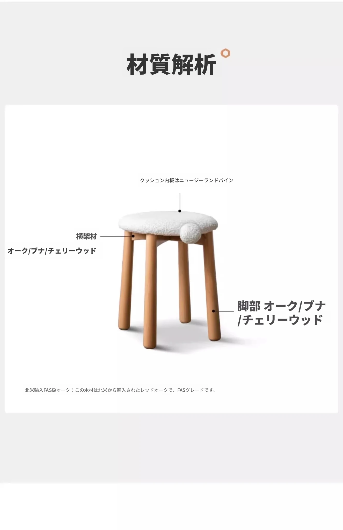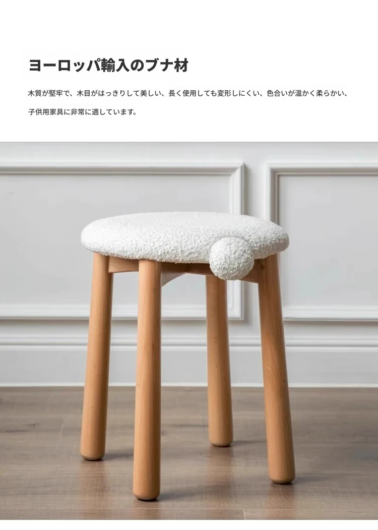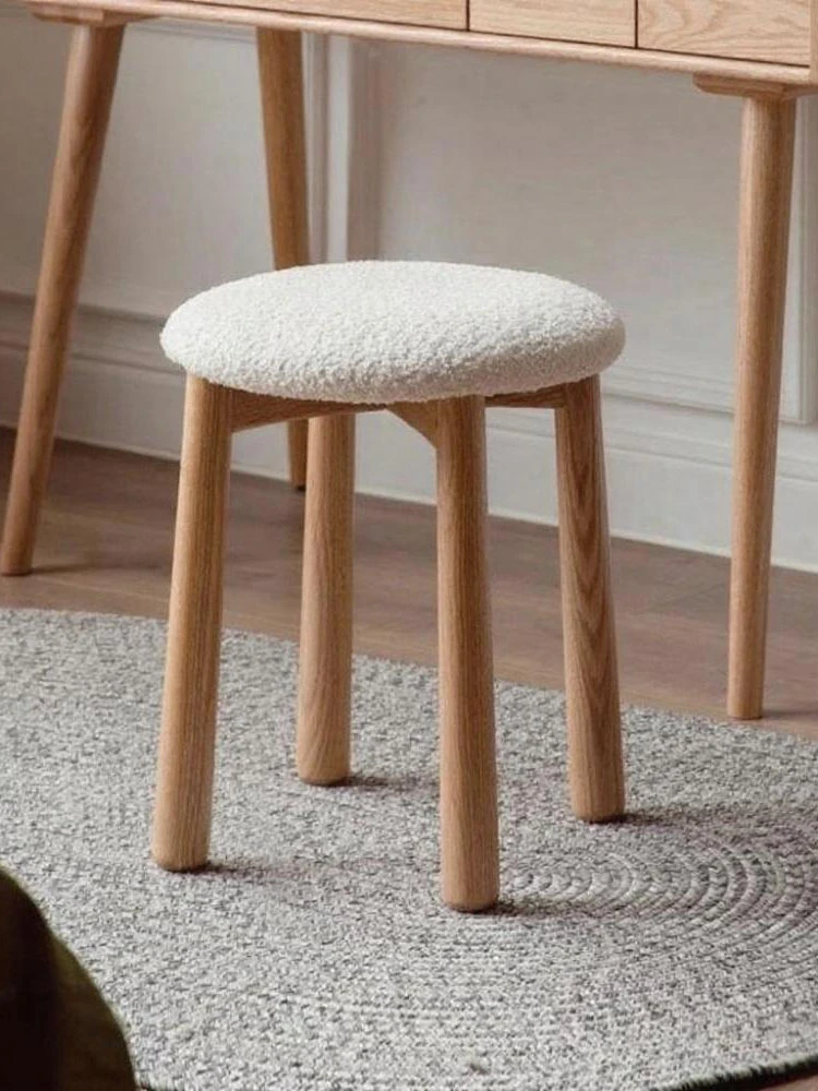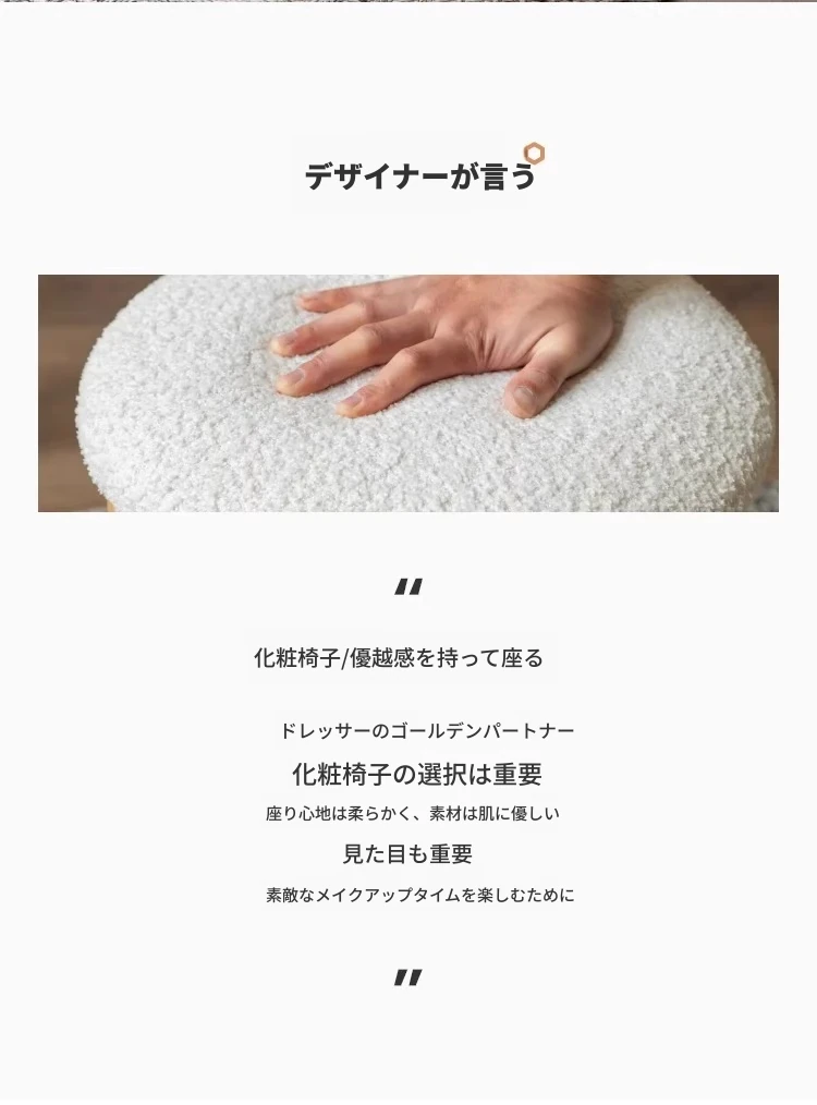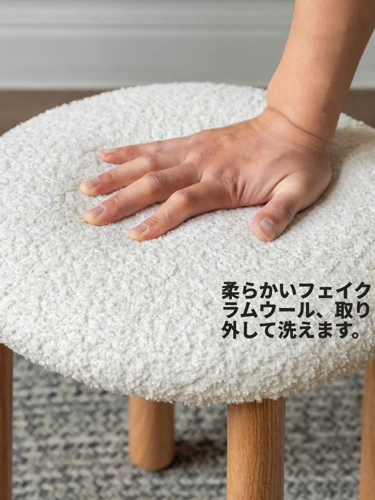 北欧デザインの実木メイクアップスツール - 女子のための高級感溢れるソフトパッド付き椅子。寝室やクローゼットにぴったりの美しい円形スツール!あなたのビューティータイムを格上げします。