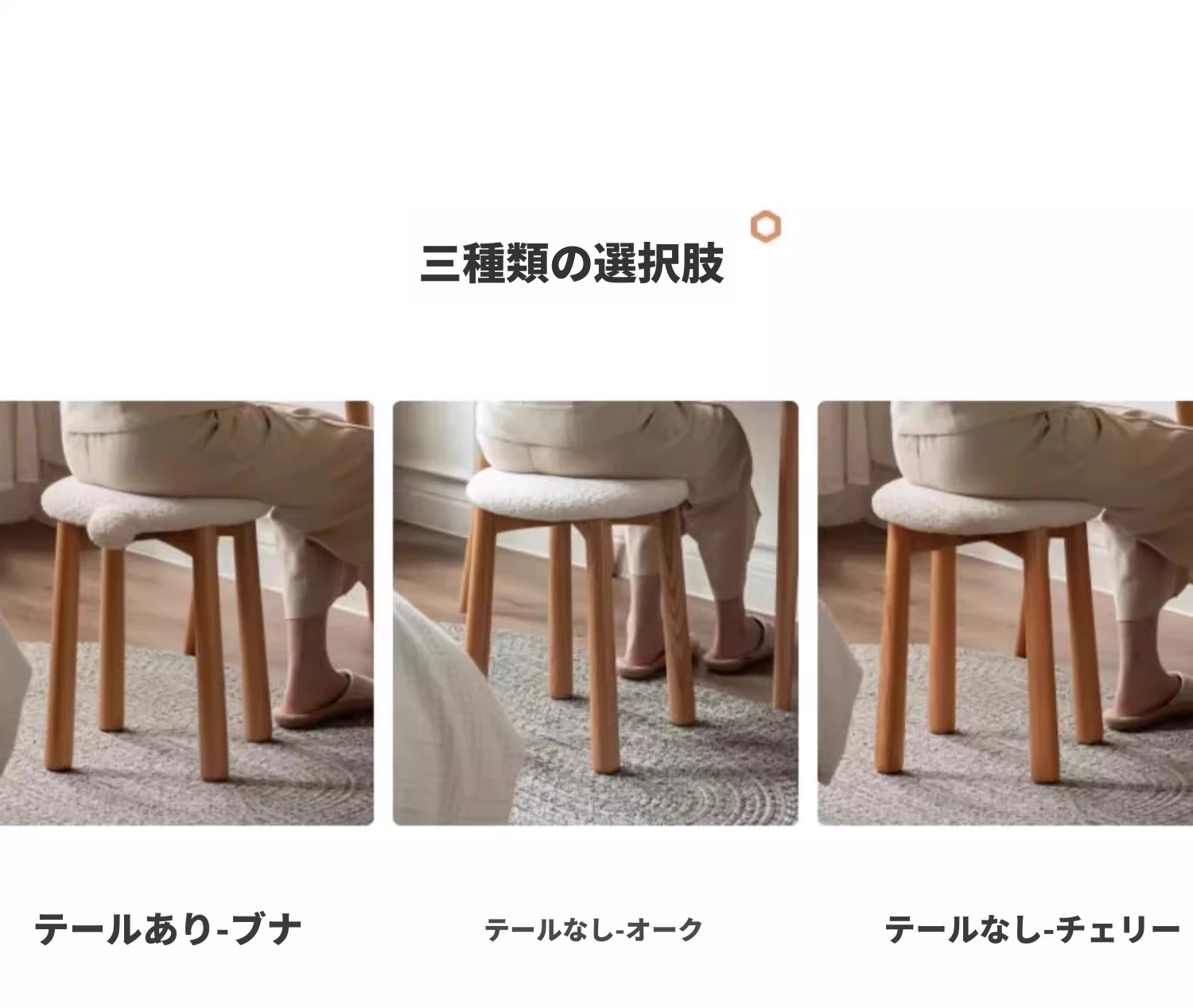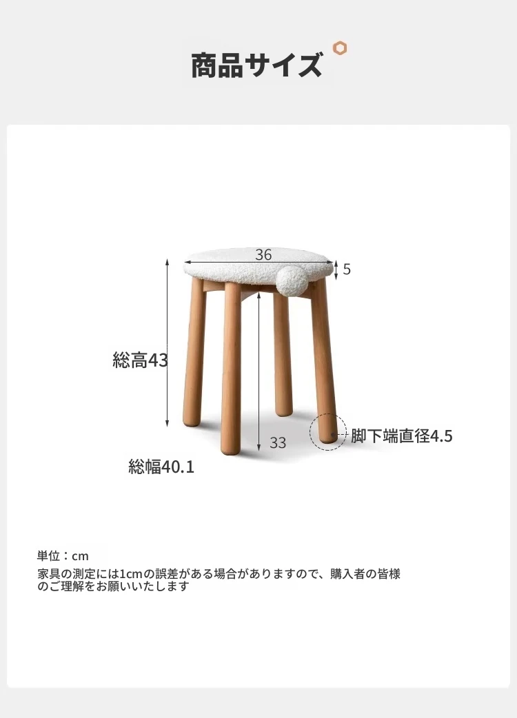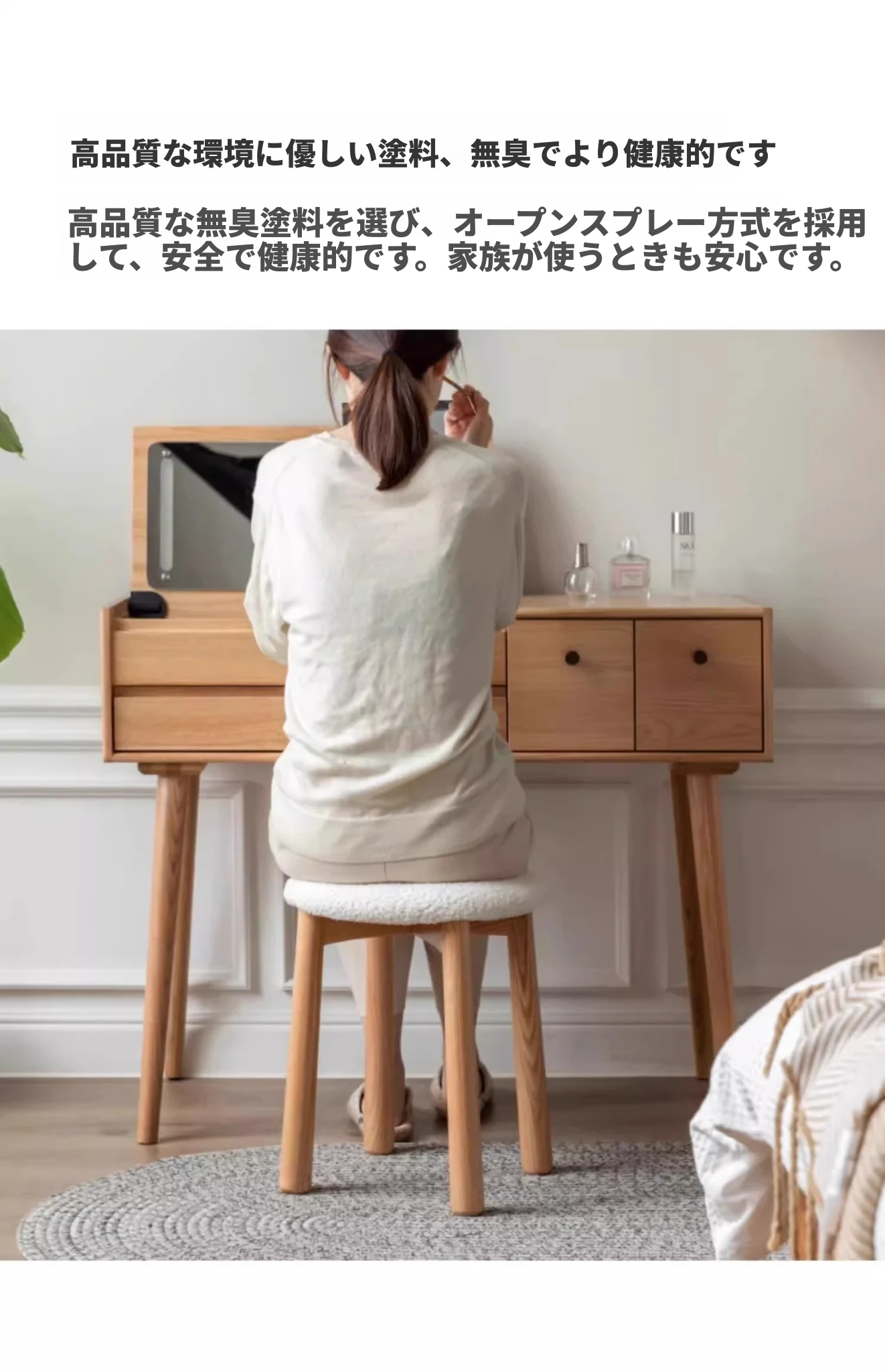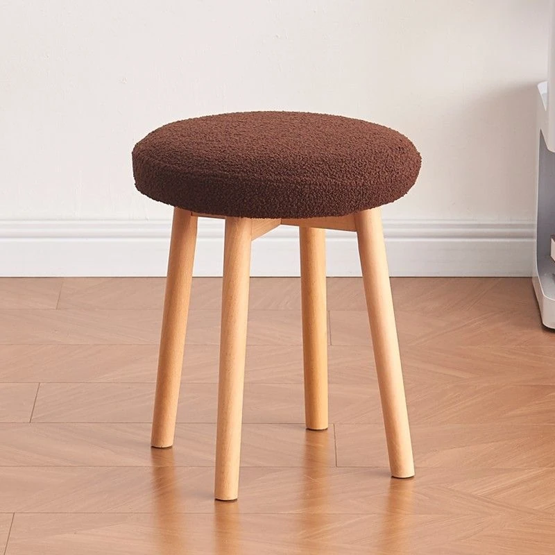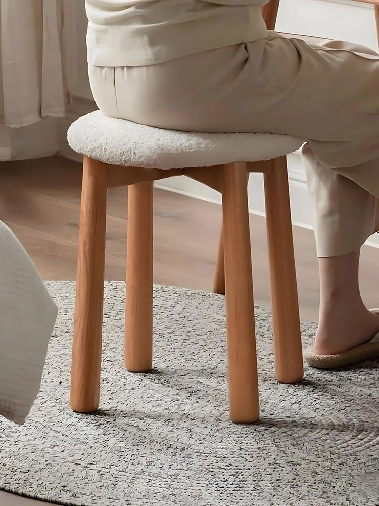北欧デザインの実木メイクアップスツール - 女子のための高級感溢れるソフトパッド付き椅子。寝室やクローゼットにぴったりの美しい円形スツール!あなたのビューティータイムを格上げします。