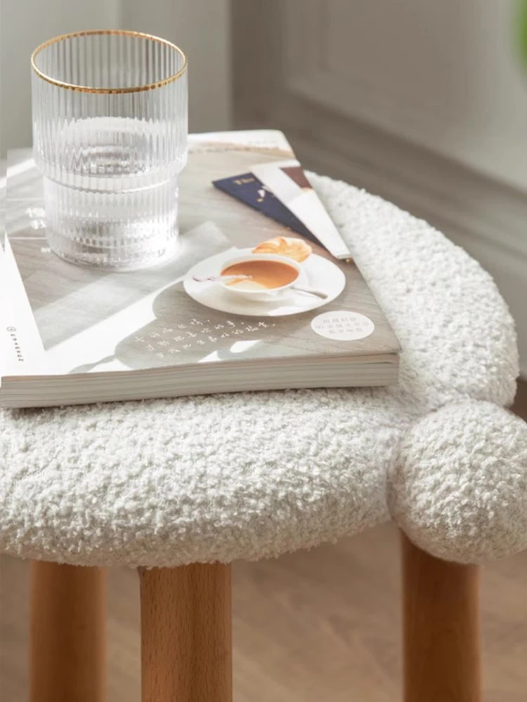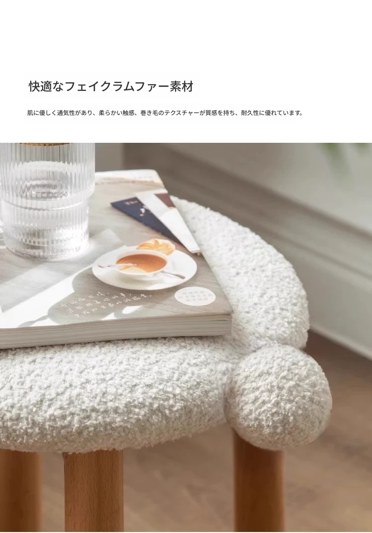 ナチュラルウッドカラーのラムファーありのうさぎスツールホワイト