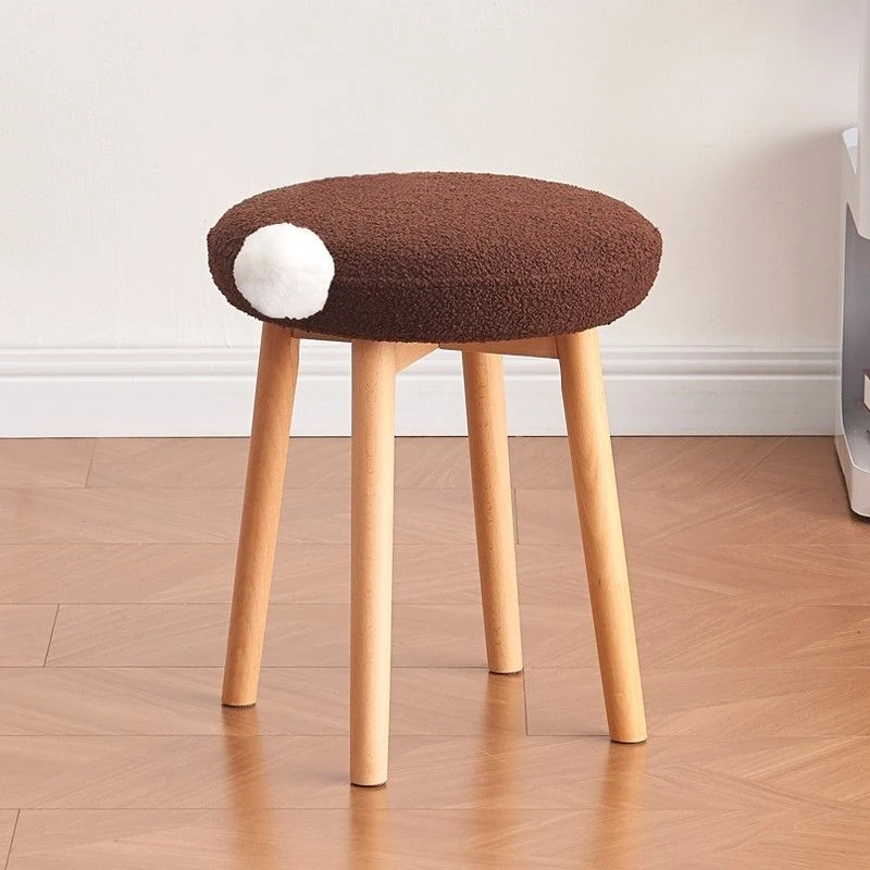 ナチュラルウッドカラーのラムファーありのうさぎスツールブラウン