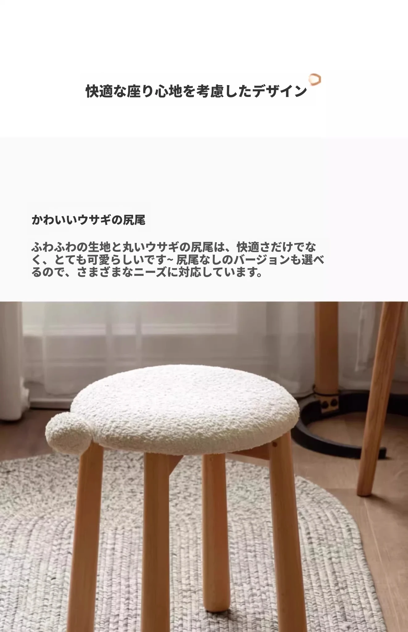 ナチュラルウッドカラーのラムファーなしのうさぎスツールホワイト