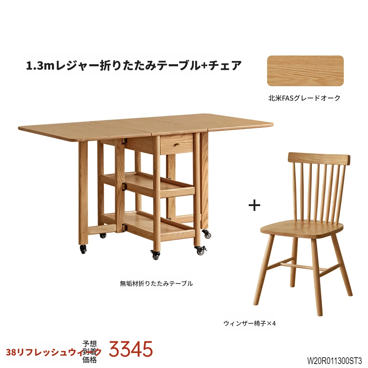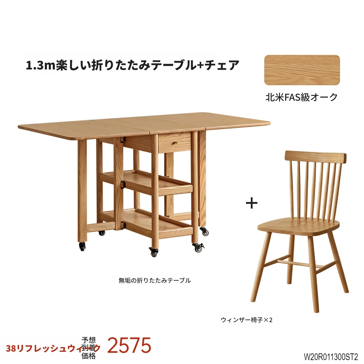 1.3メートルの無垢材製折りたたみダイニングテーブル+WY032ダイニングチェア*2
