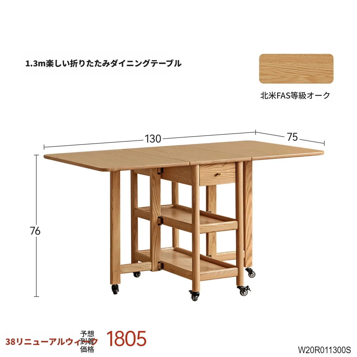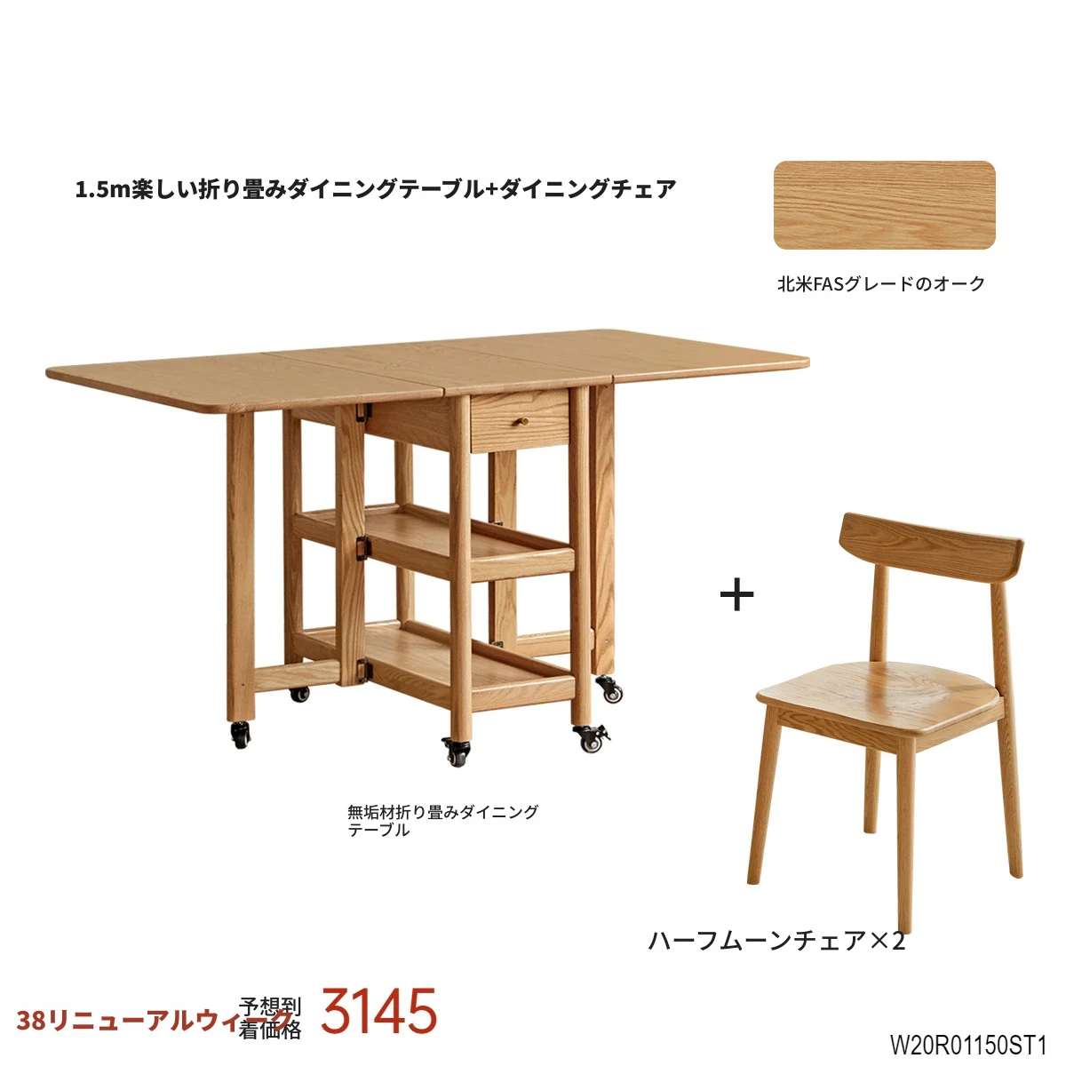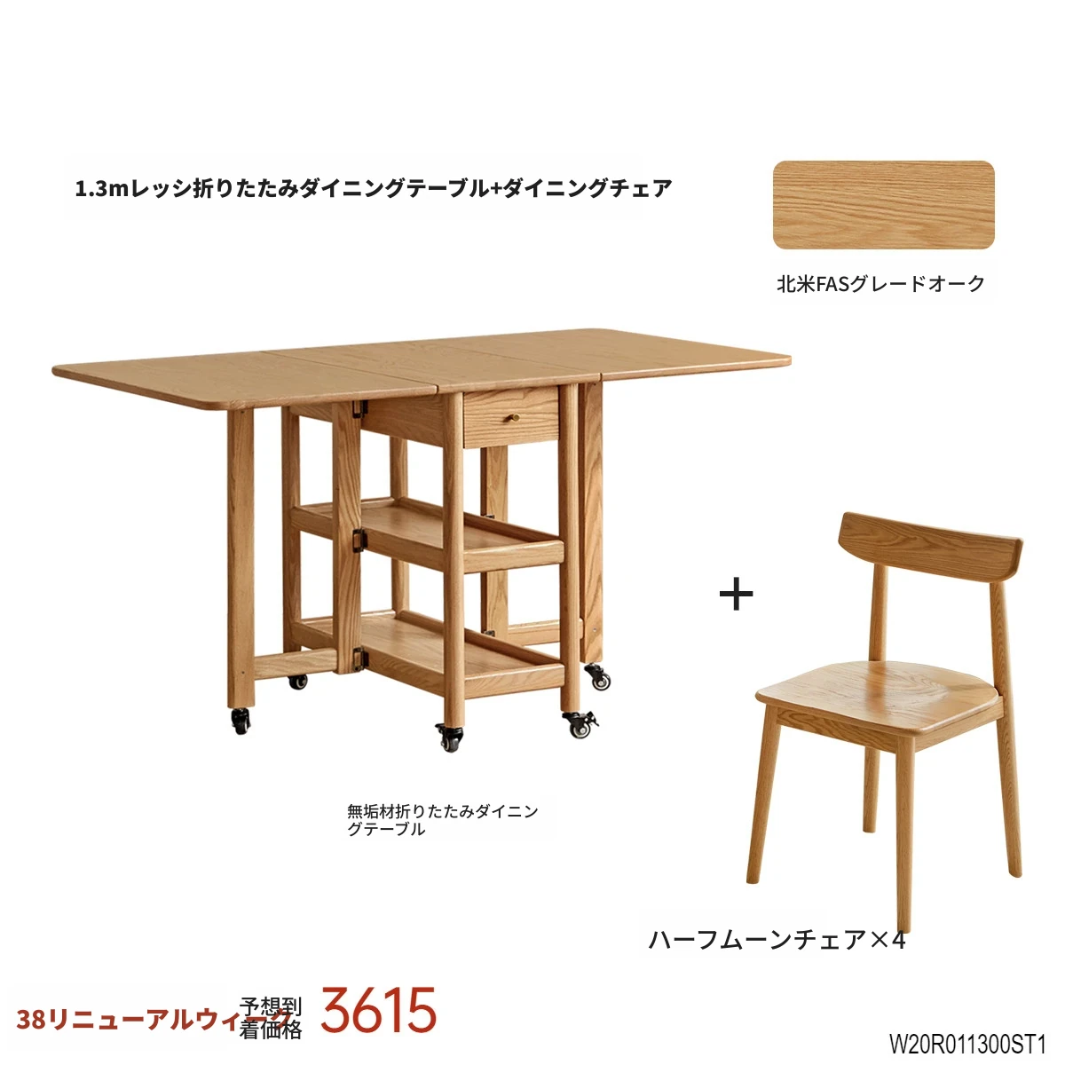 ヴィーシャ全実木ダイニングテーブル|北欧スタイルのコンパクトで移動可能な折りたたみテーブル|モダンでシンプルなオーク材使用|小さなお部屋にもぴったりな食事シーンを演出します!