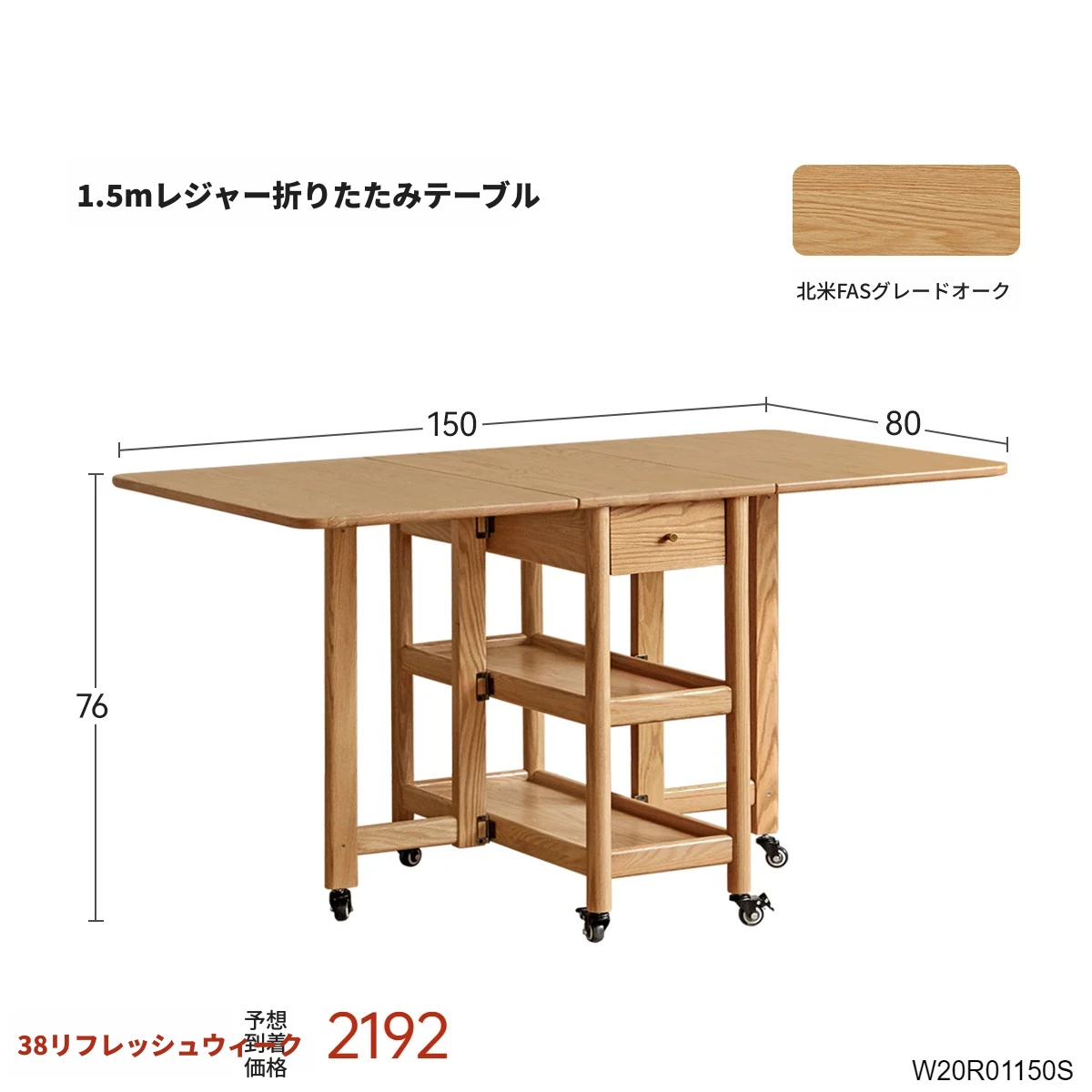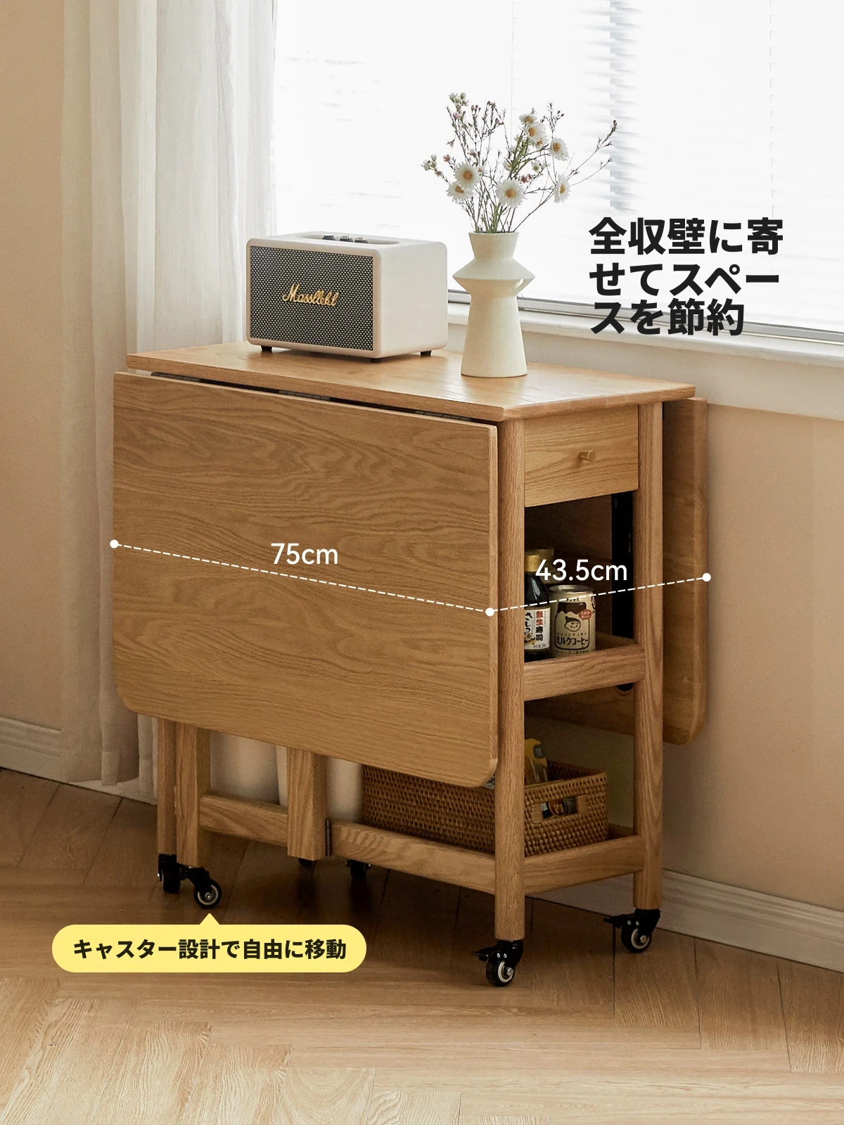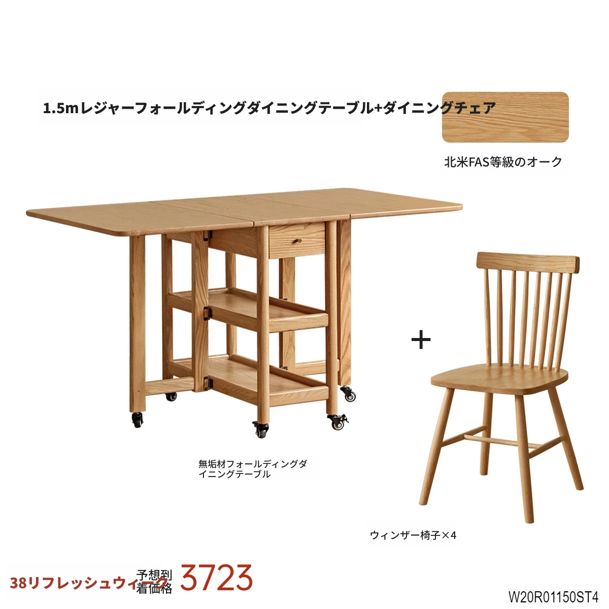 ヴィーシャ全実木ダイニングテーブル|北欧スタイルのコンパクトで移動可能な折りたたみテーブル|モダンでシンプルなオーク材使用|小さなお部屋にもぴったりな食事シーンを演出します!