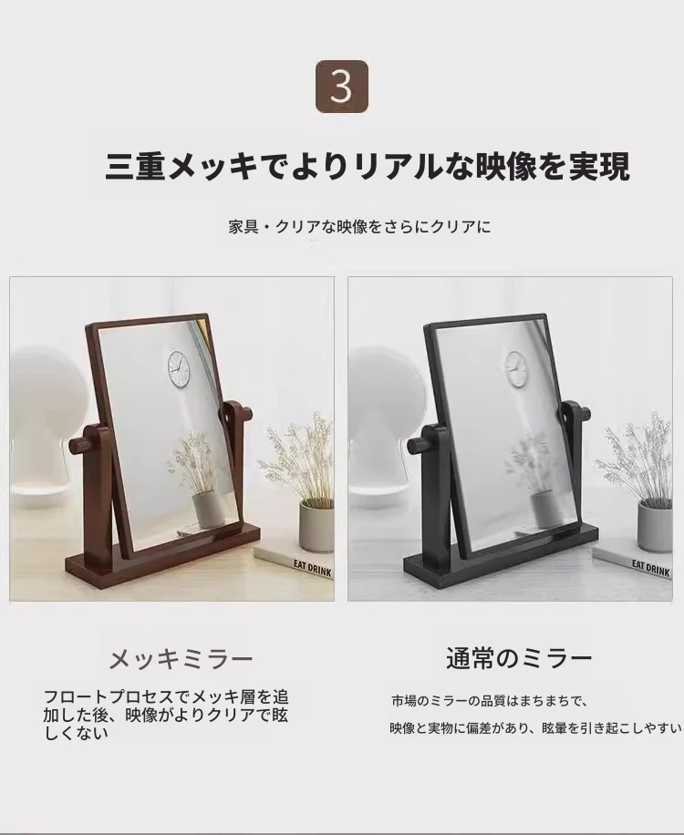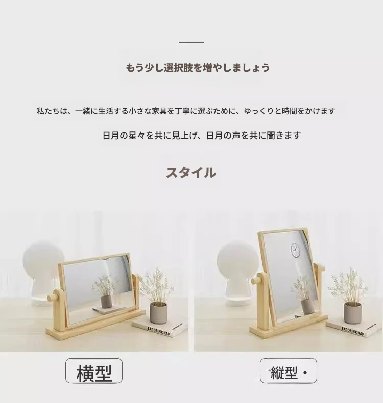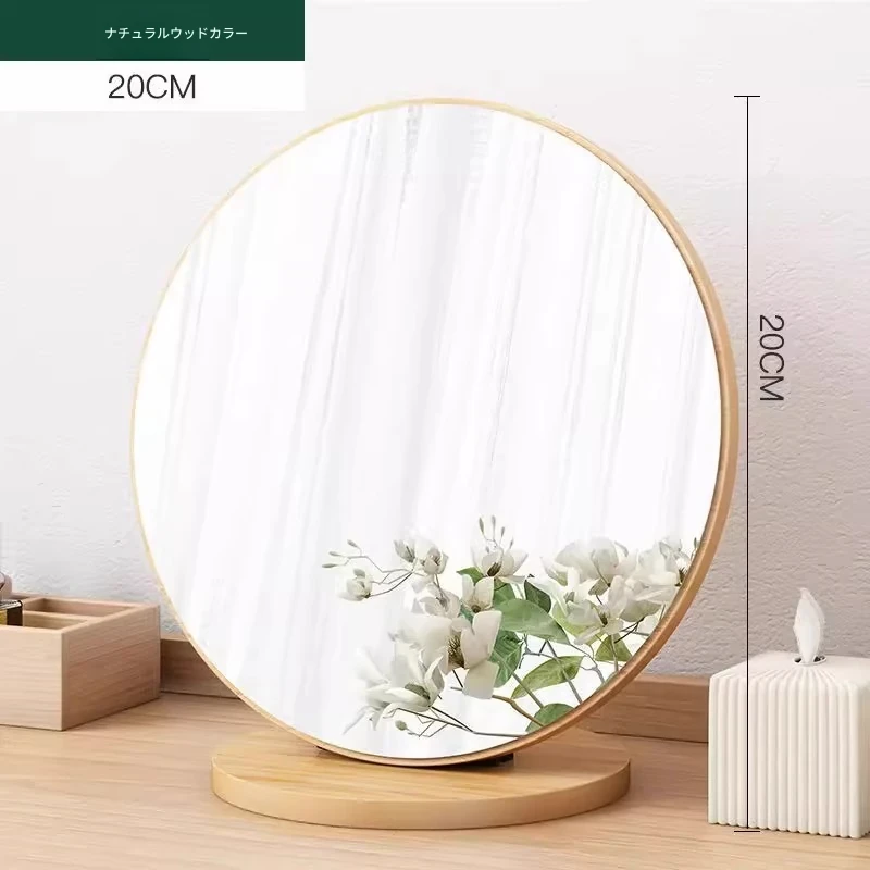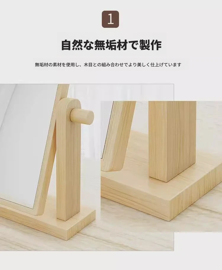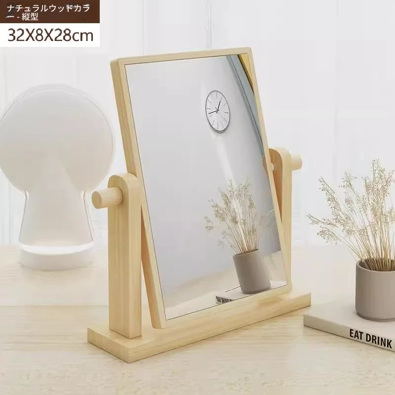 【多角度調整|品質の無垢材|高精細ミラー】32*28cmナチュラルカラー-縦型