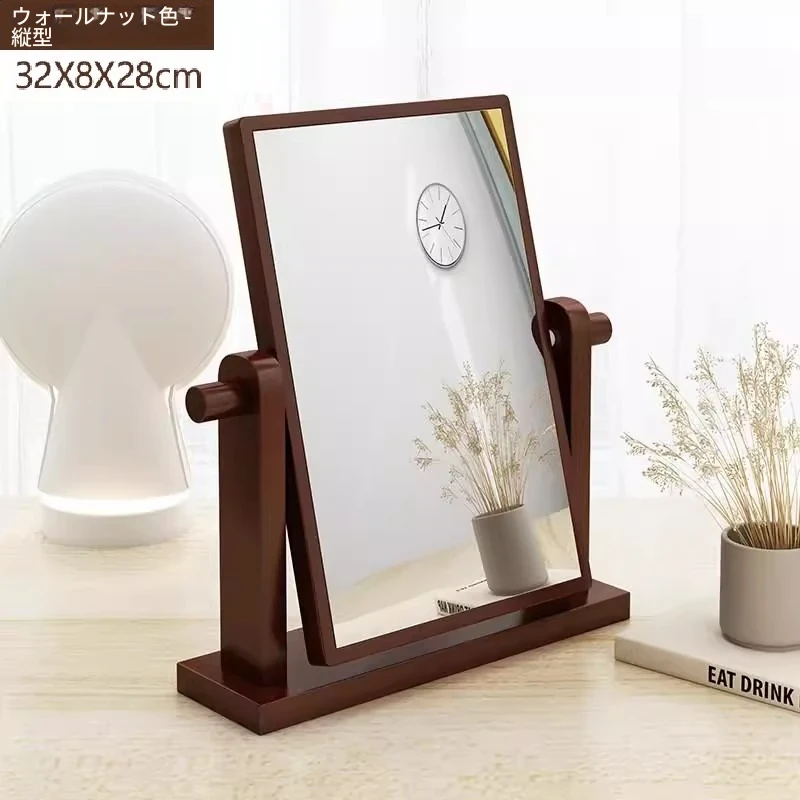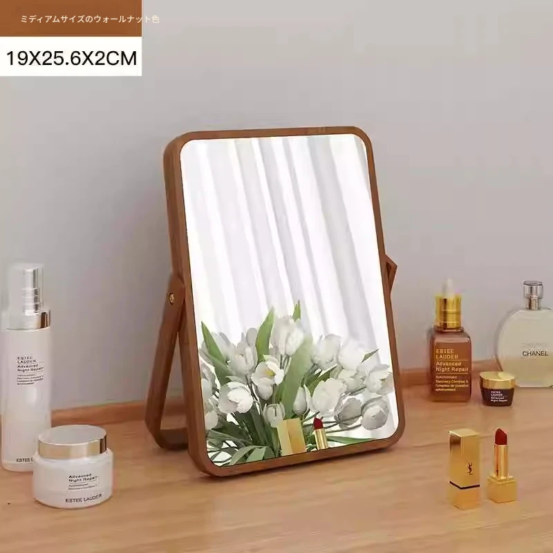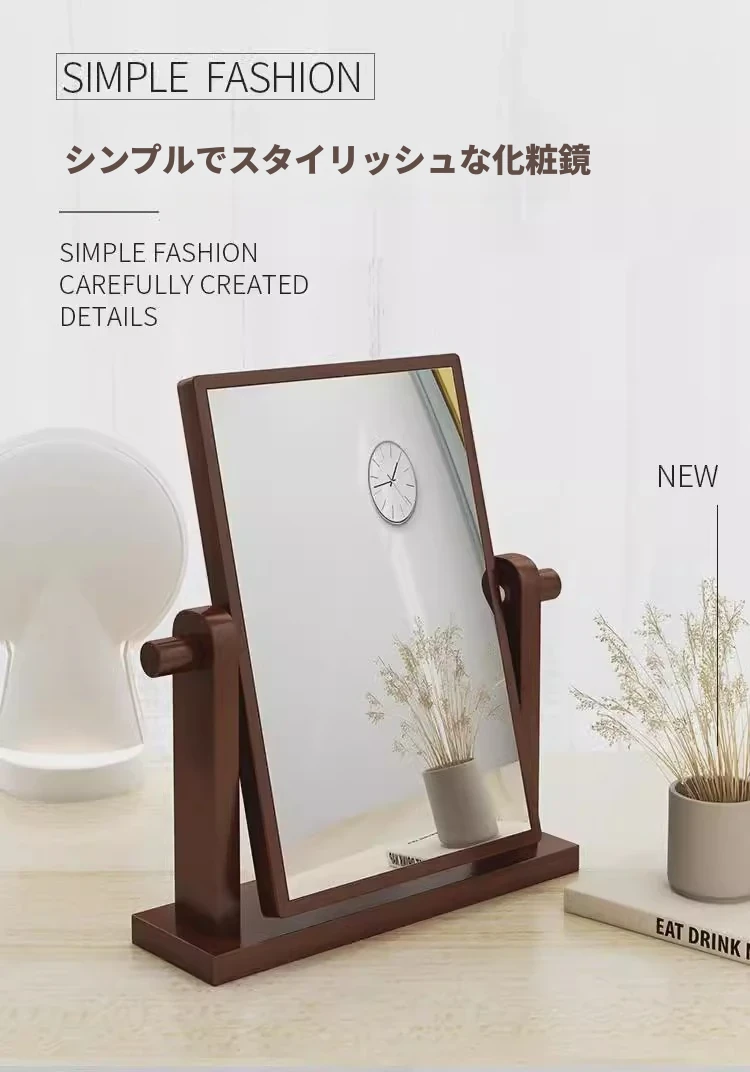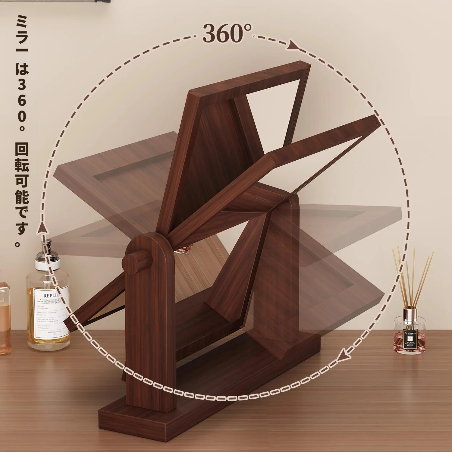 アンティーク調の回転式化粧鏡 - 実木製デスクトップミラー、家庭用、主寝室に最適!学生寮にもピッタリの持ち運び便利なコンパクトサイズ。美しさを引き立てる、あなたのビューティーライフをサポートします!