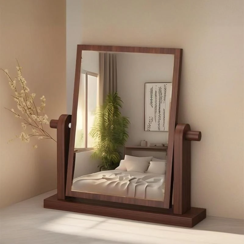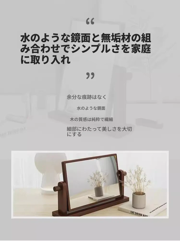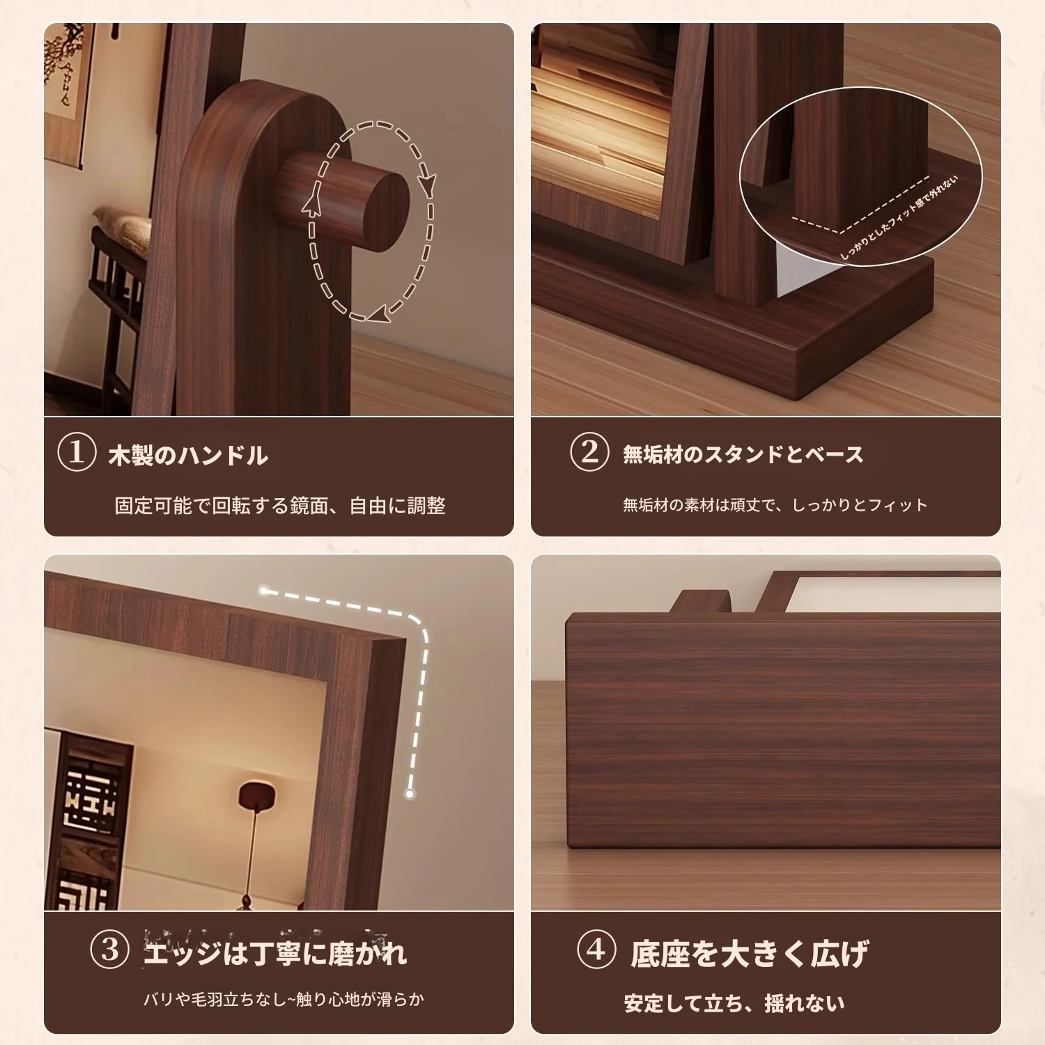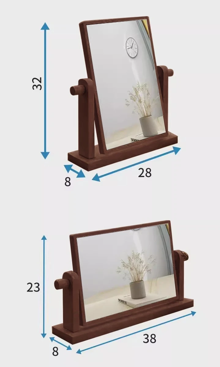 アンティーク調の回転式化粧鏡 - 実木製デスクトップミラー、家庭用、主寝室に最適!学生寮にもピッタリの持ち運び便利なコンパクトサイズ。美しさを引き立てる、あなたのビューティーライフをサポートします!
