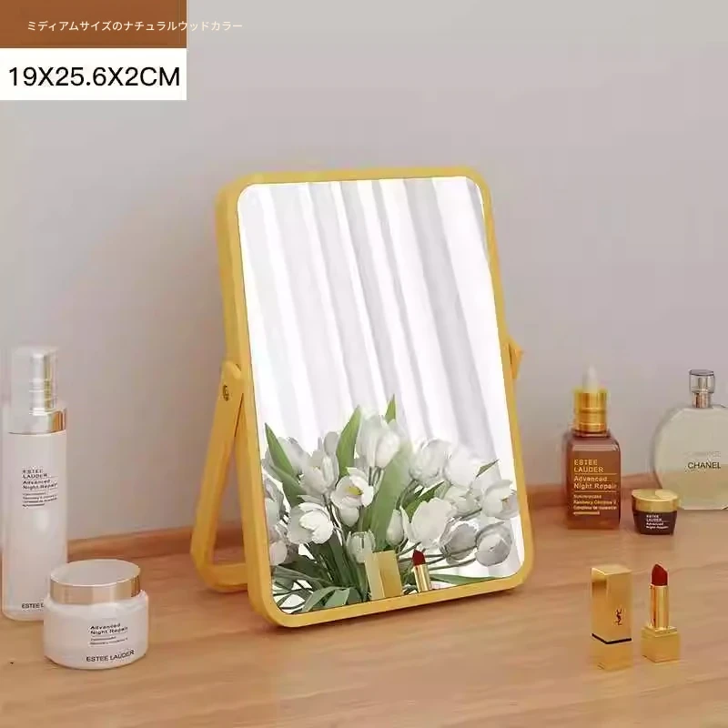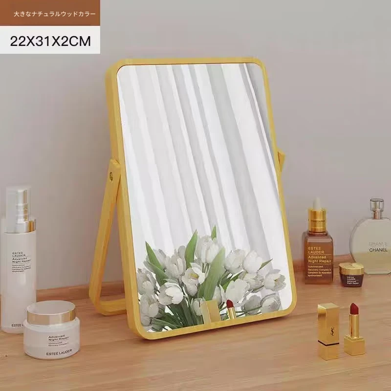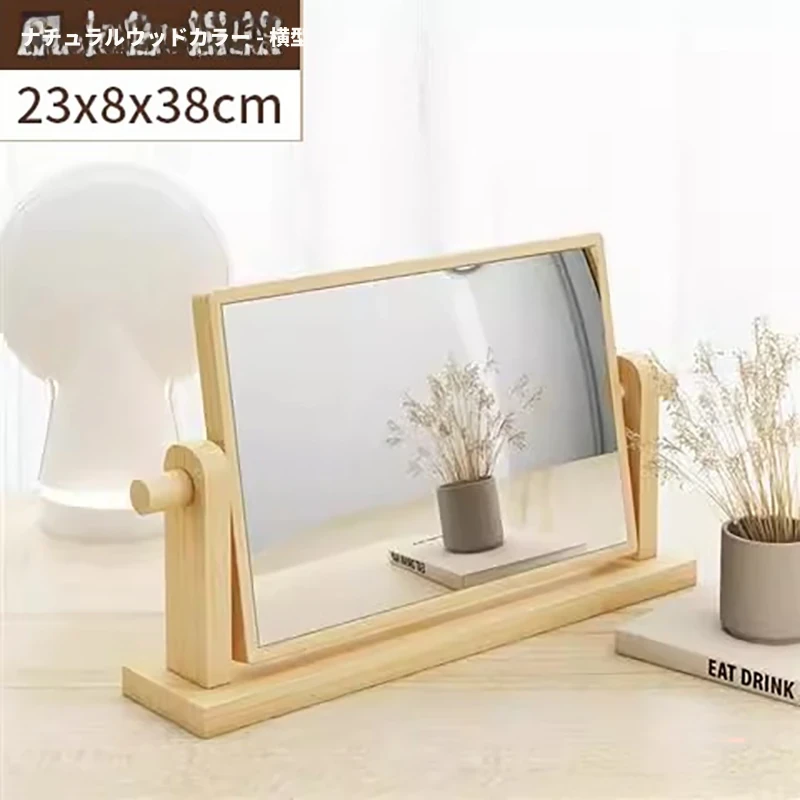 【多角度調整|品質の無垢材|高精細ミラー】23*38cmナチュラルカラー-横型