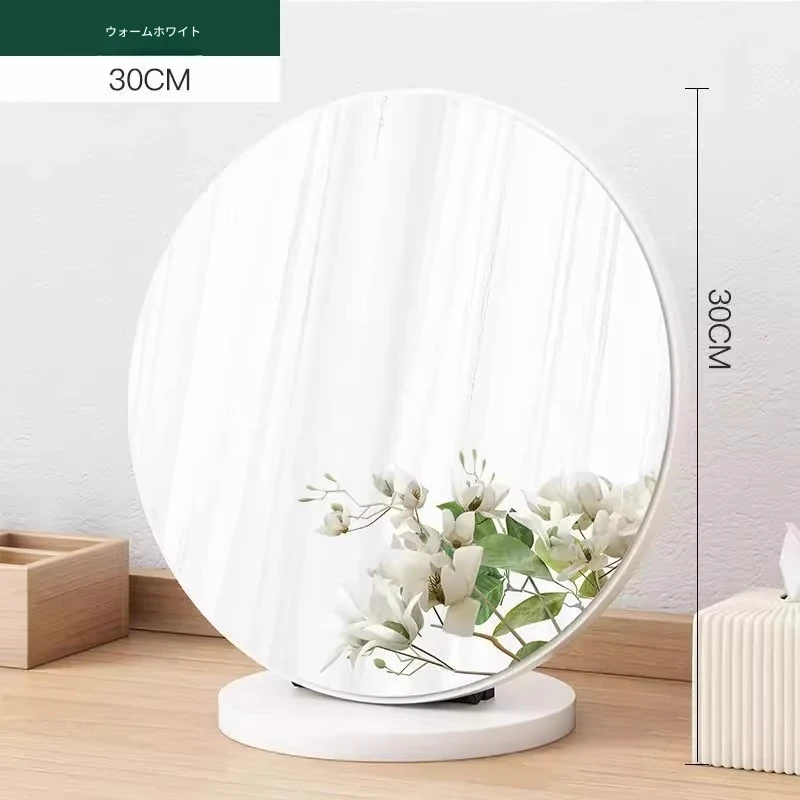 【角度調整可能|無垢木枠|高精細ミラー】大サイズ-30cmウォームホワイト