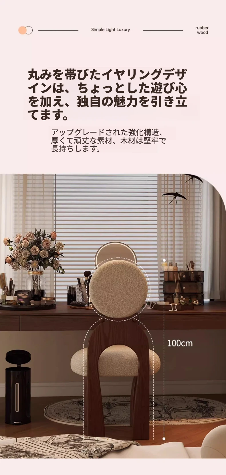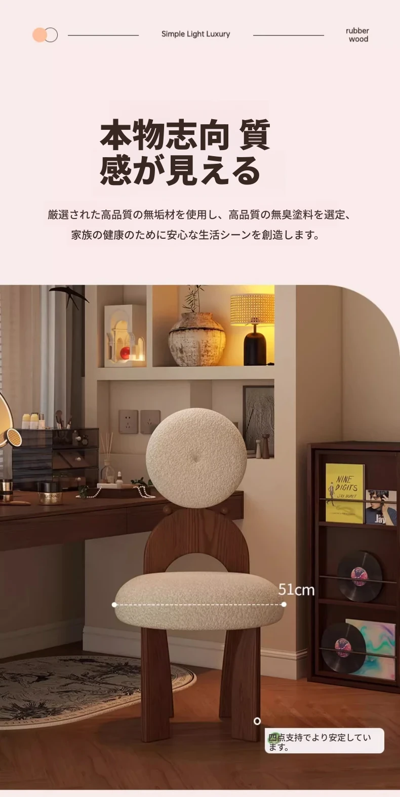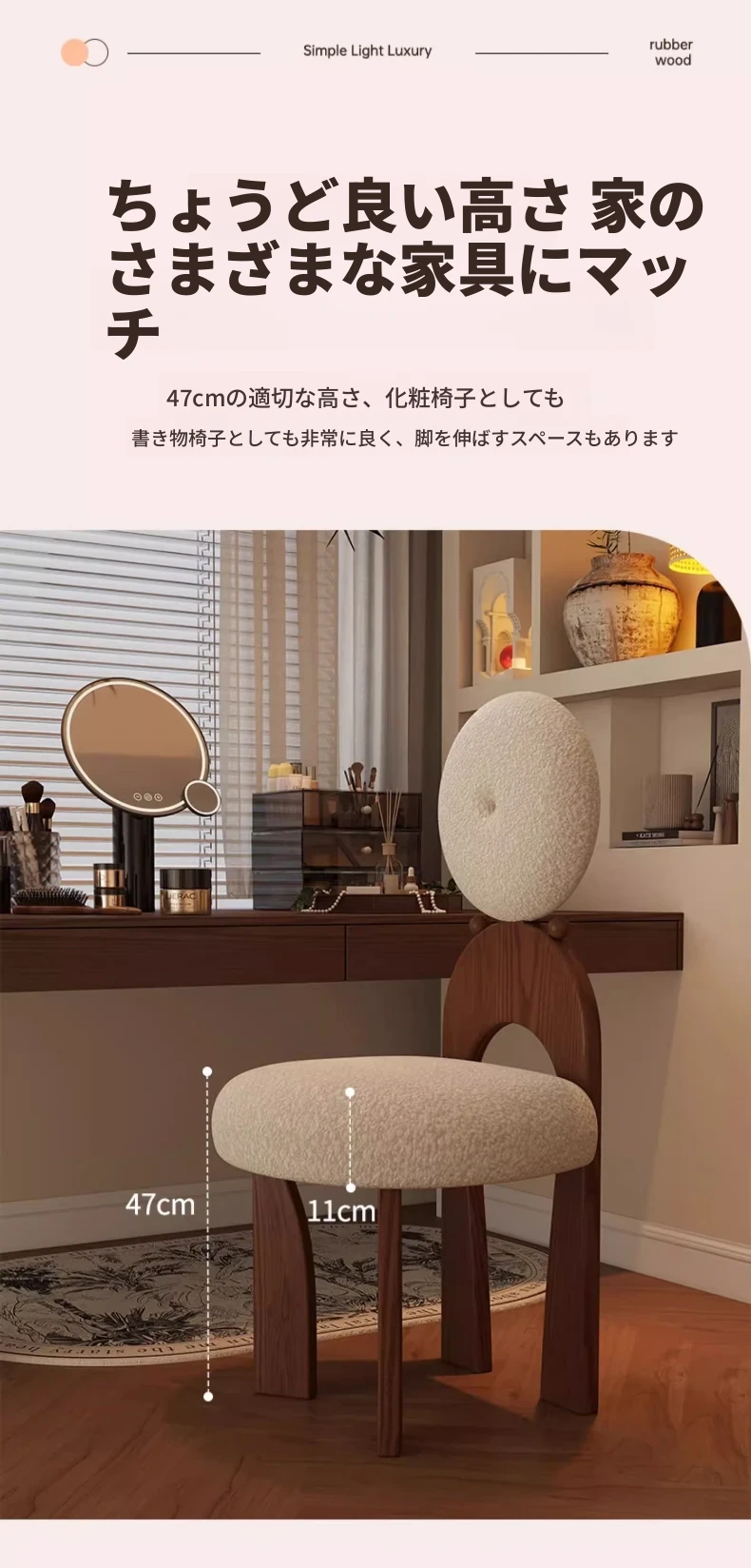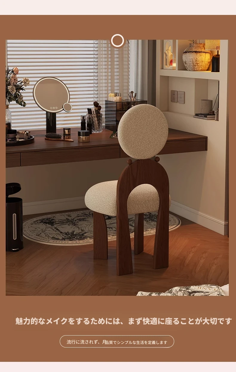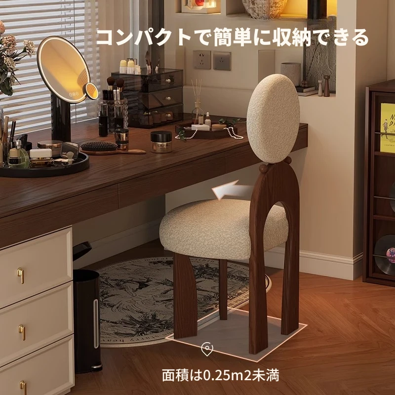 新作!ヴィンテージスタイルの化粧台椅子、実木製で耐久性抜群。軽やかなラグジュアリー感を演出するシープボア素材で、女の子の寝室にぴったりの化粧凳。おしゃれで快適なメイクアップ体験をお楽しみください!