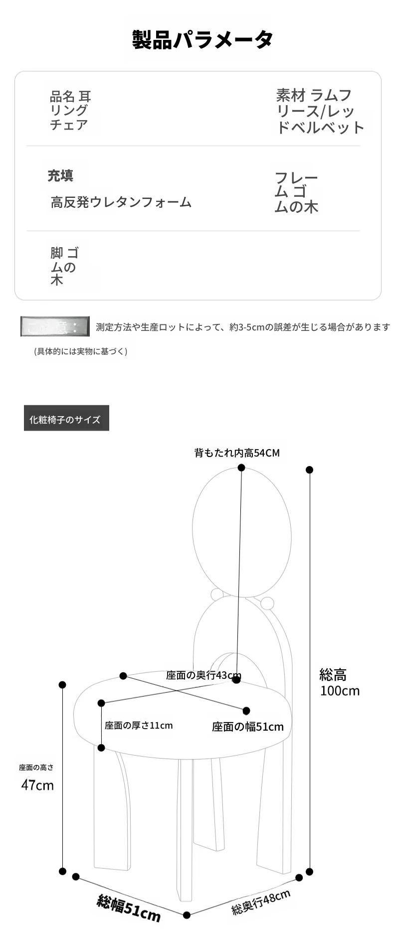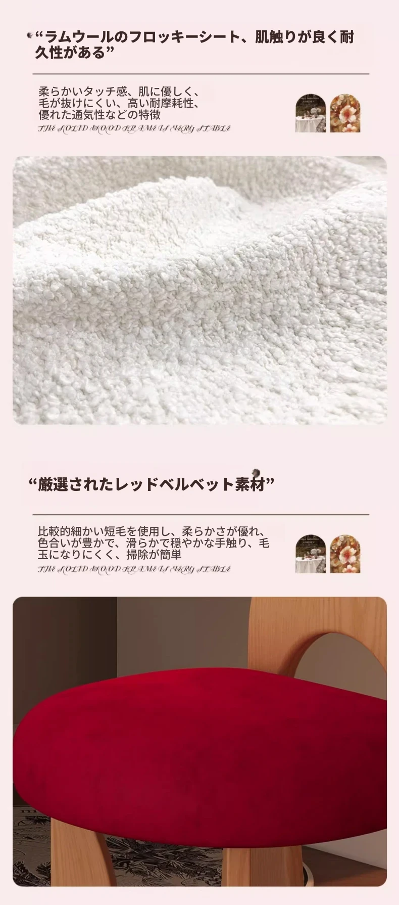 原木フレーム/レッドベルベット【肌に優しく通気性があり、安定して耐久性がある】イヤリングチェア