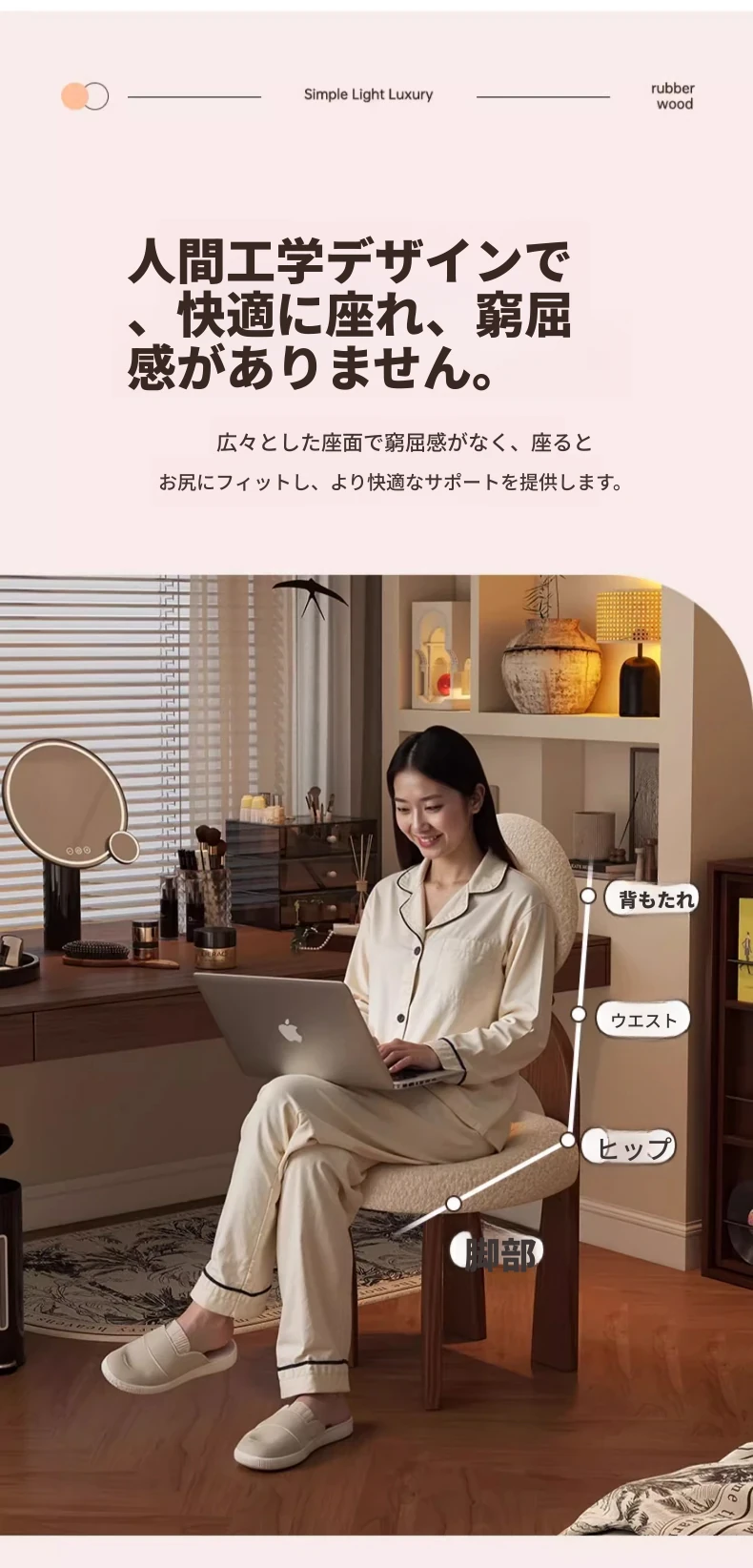 原木フレーム/ピンクラムファー【肌に優しく通気性があり、安定して耐久性がある】イヤリングチェア