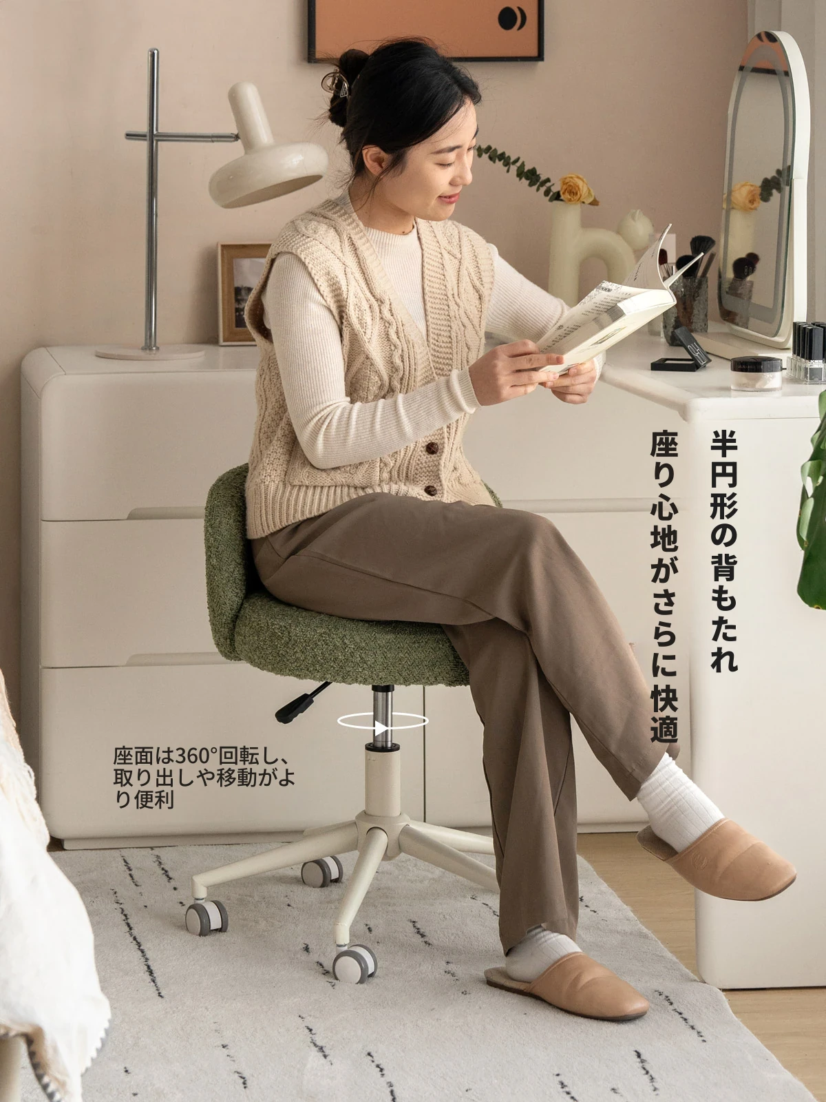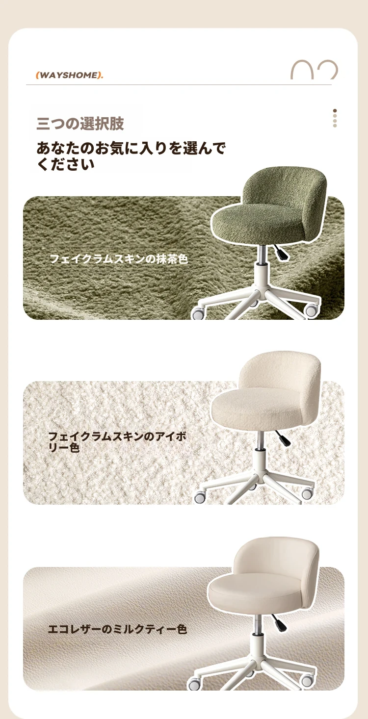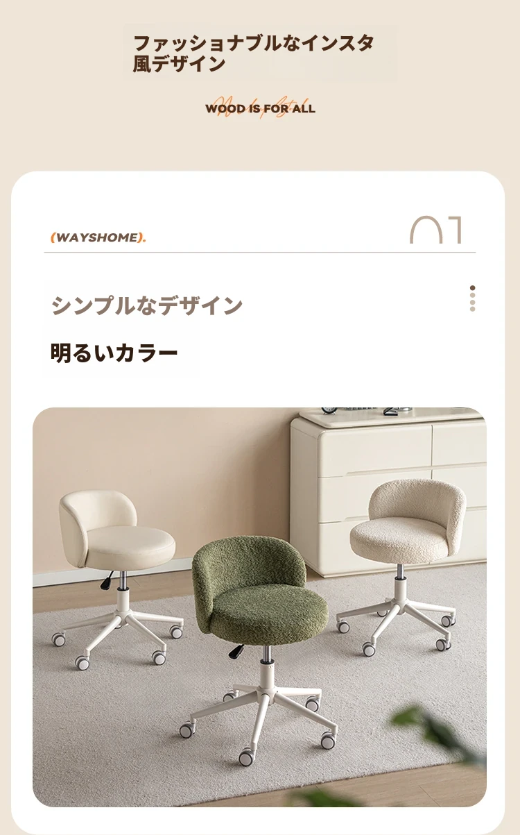 ヴィシャ化粧椅子 モダンミニマリスト 調整可能な昇降式 小型回転背もたれ椅子 家庭用 寝室用ドレッサー椅子 おしゃれで実用的なデザインで、スペースを有効活用!