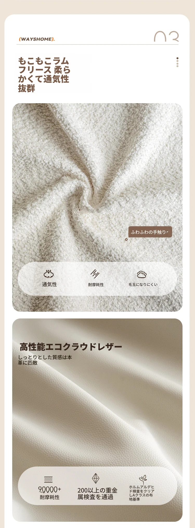 0.48メートル化粧台(フェイクムートン雲綿ホワイト)(480*500*580-640mm)S05231