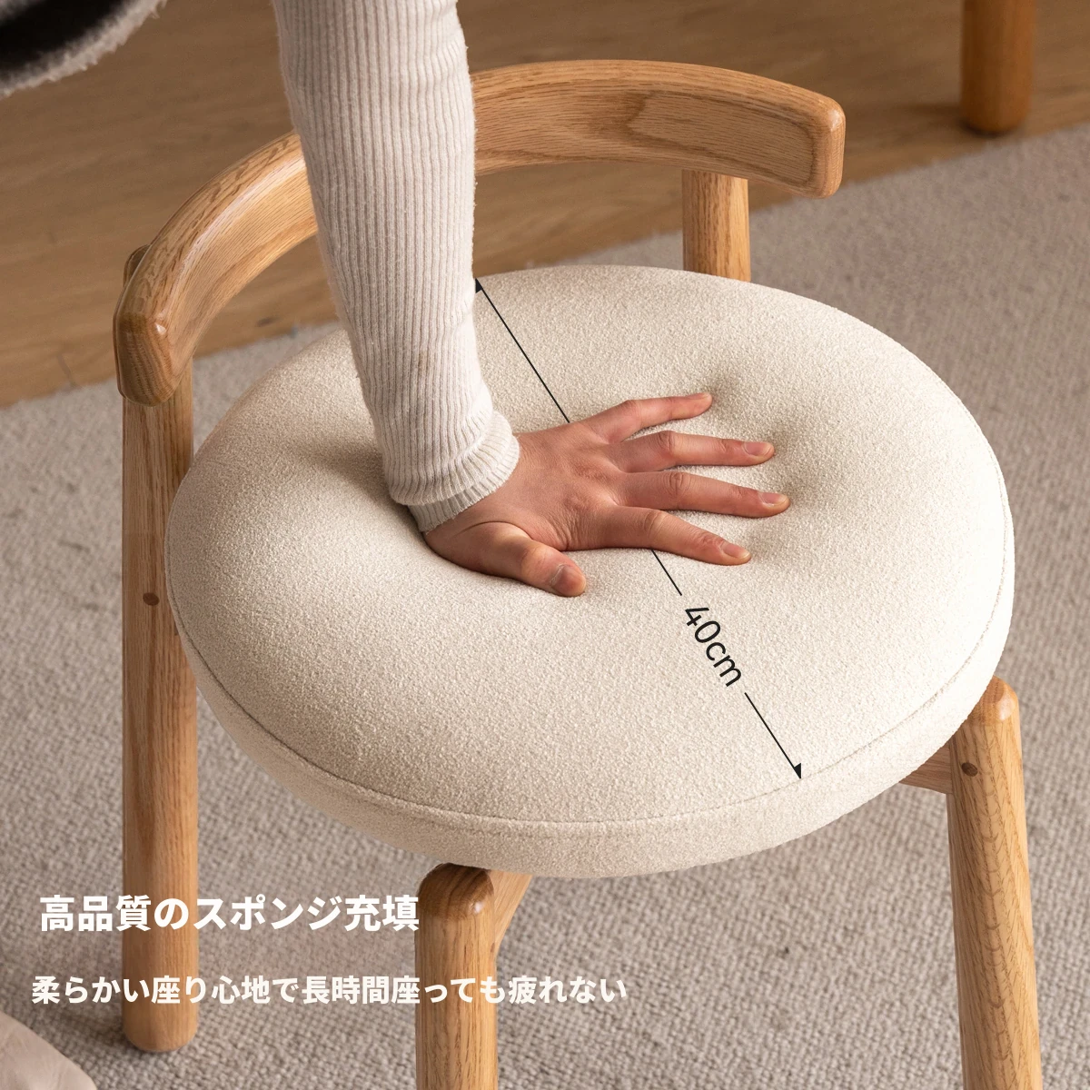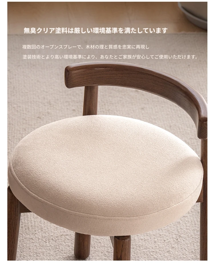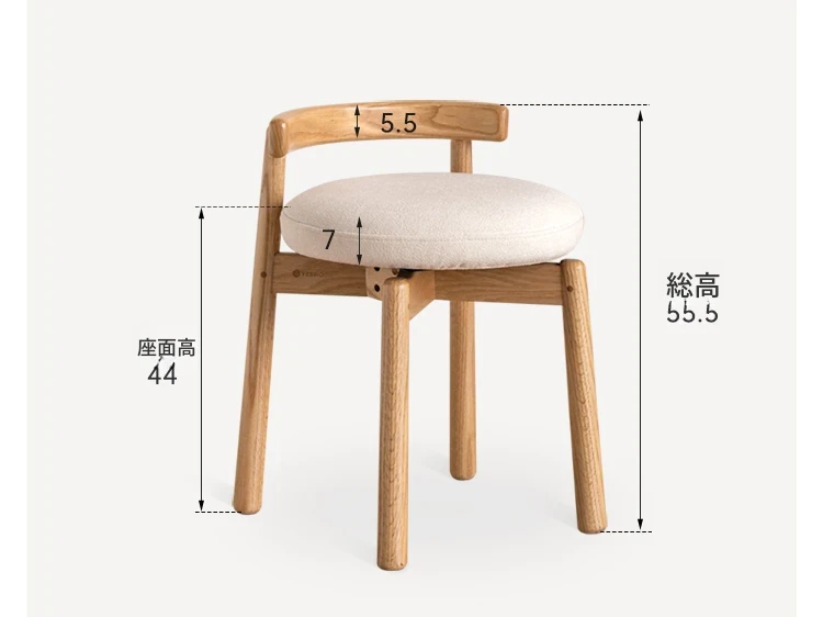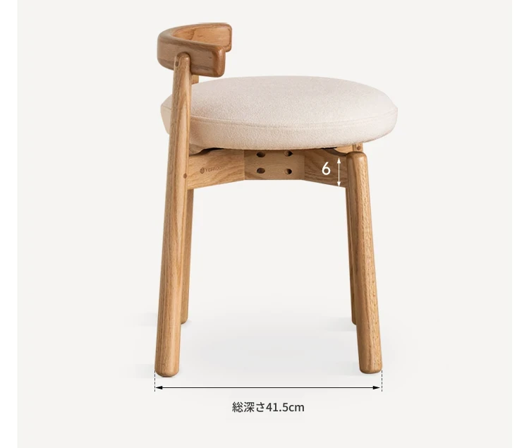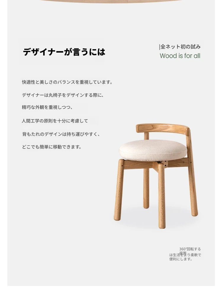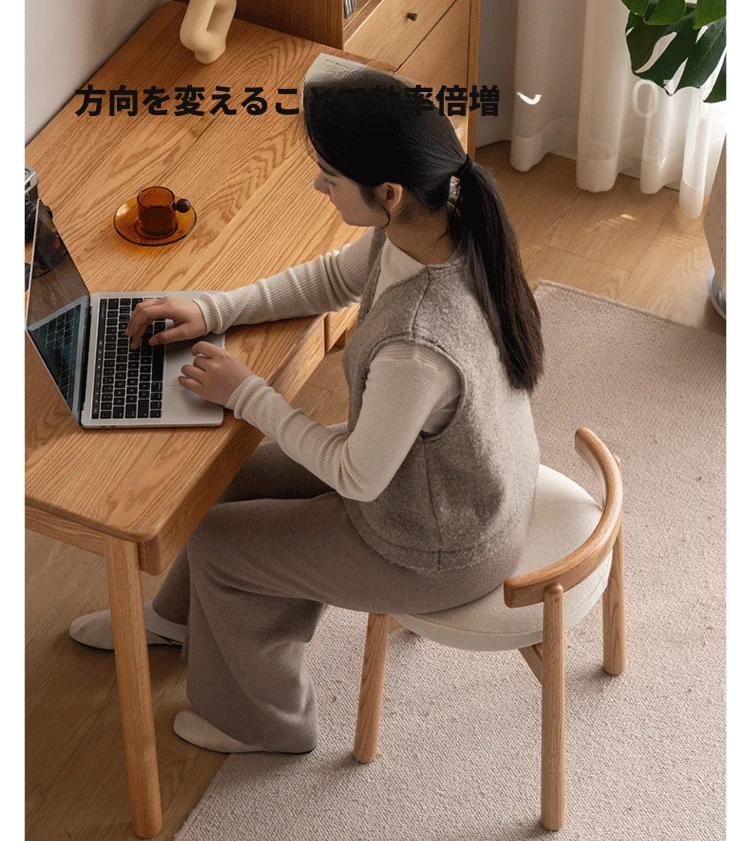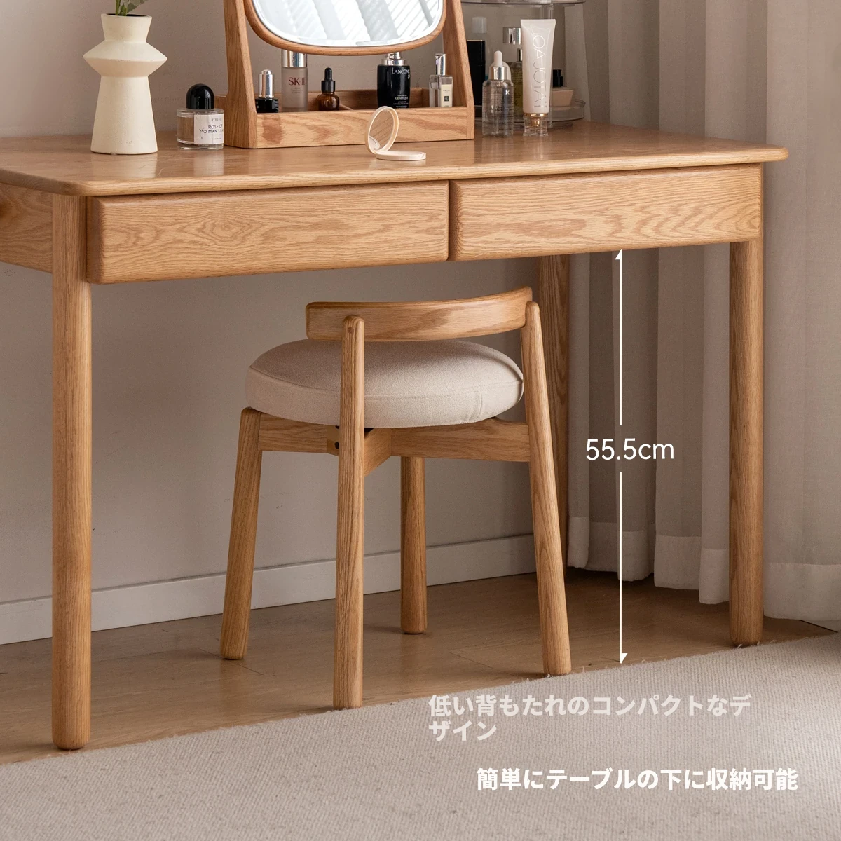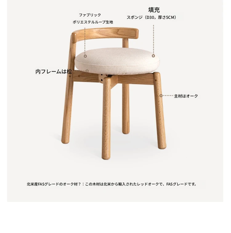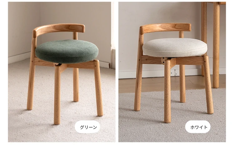 ウィシャー天然木製ドレッシングスツール モダンシンプルなソフトパッド付き オーク製の丸椅子 家庭用ベッドルーム回転スツール メイクアップスツールで優雅なひとときを!