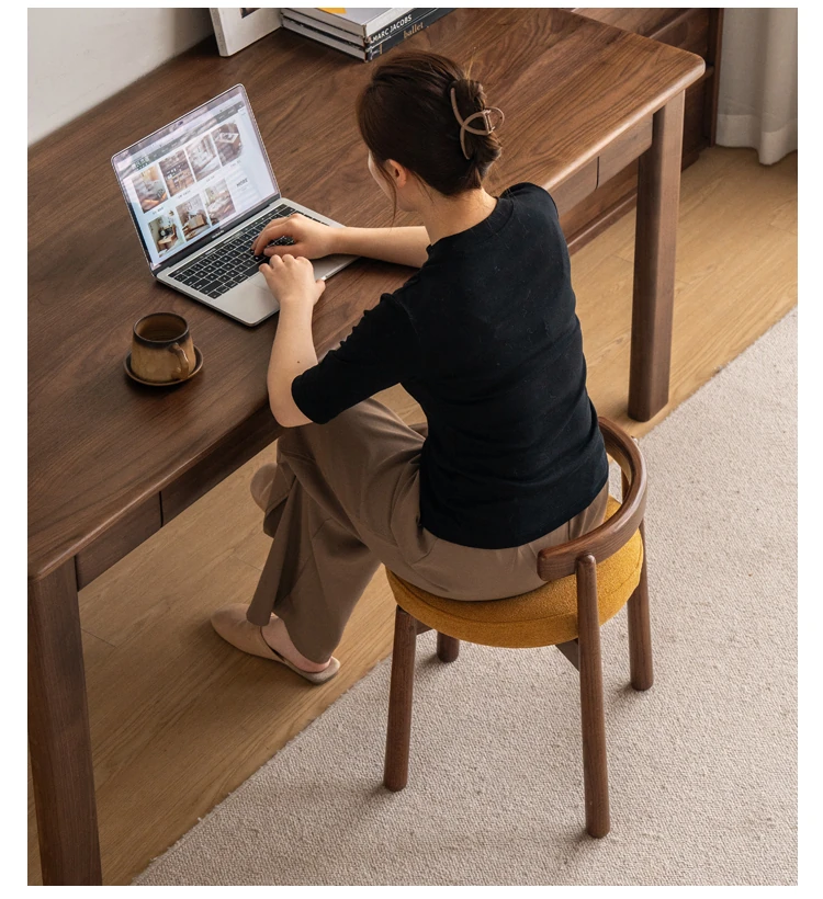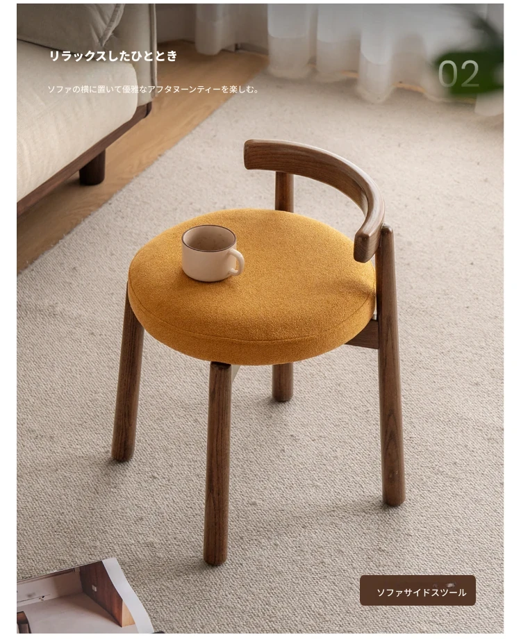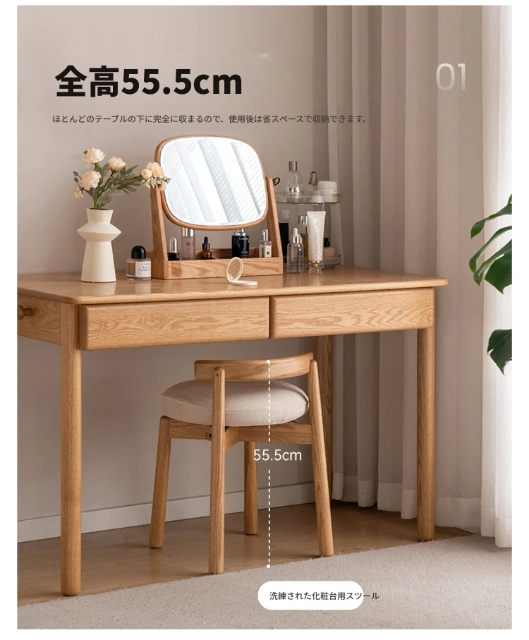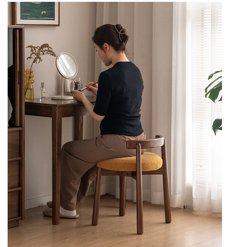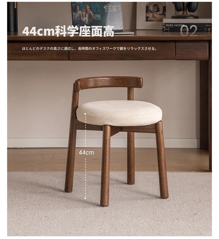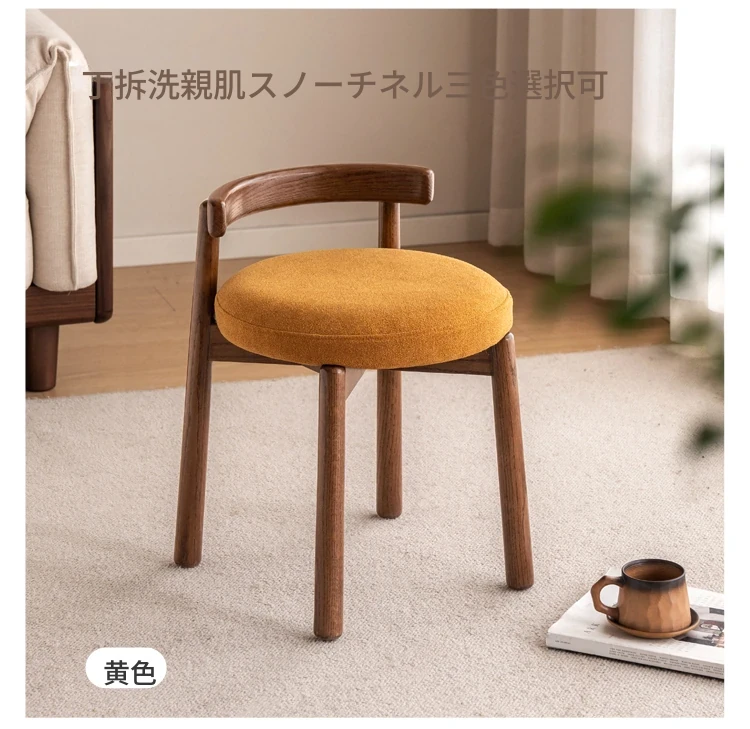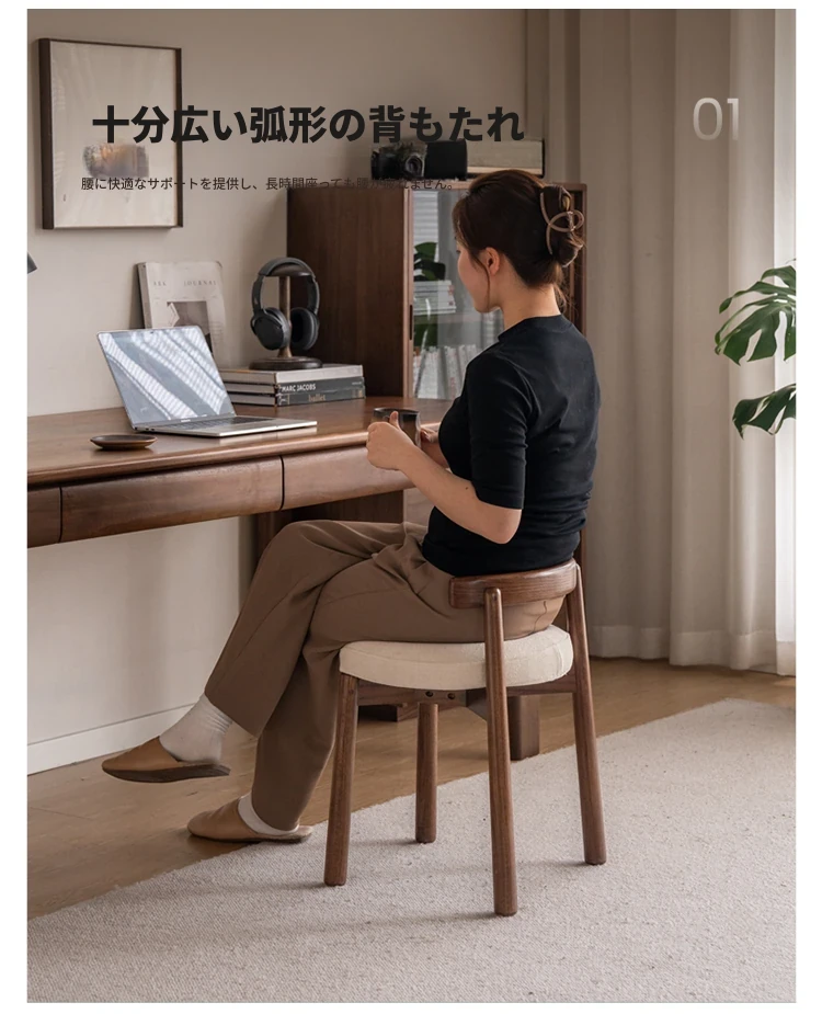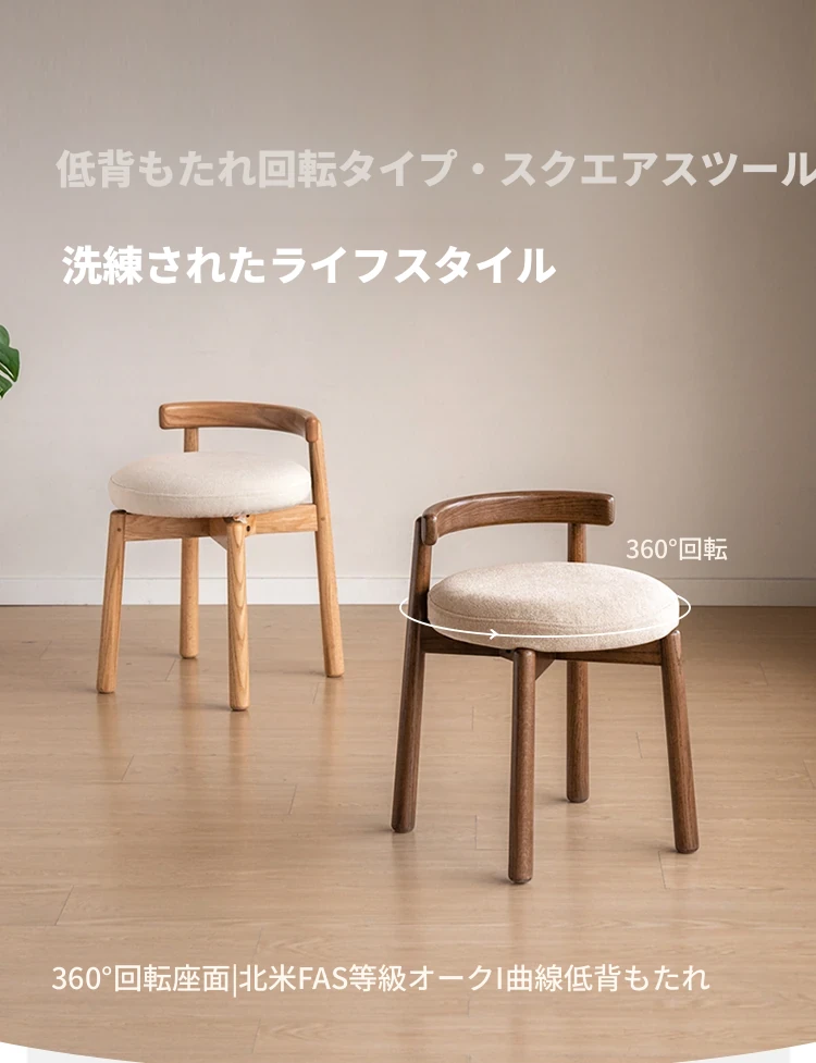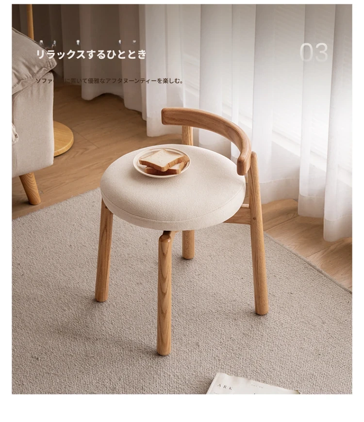 ウィシャー天然木製ドレッシングスツール モダンシンプルなソフトパッド付き オーク製の丸椅子 家庭用ベッドルーム回転スツール メイクアップスツールで優雅なひとときを!